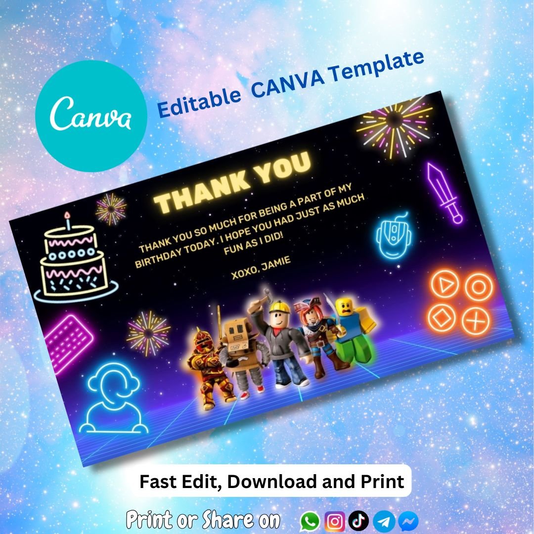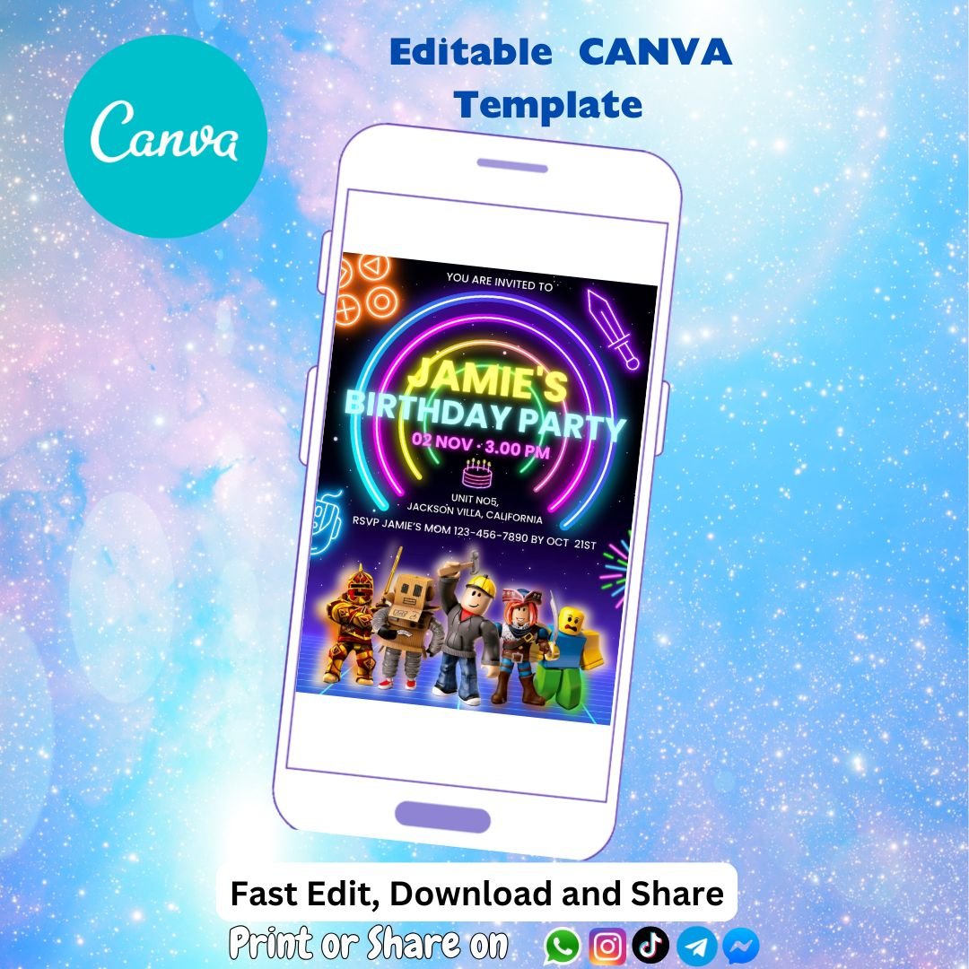 So why wait? Let the magic of Roblox come alive with our Roblox Theme Party Birthday Invitation. Order yours today and get ready to witness the smiles and laughter of your little one and their friends as they embark on a Roblox -inspired adventure at the party of a lifetime.