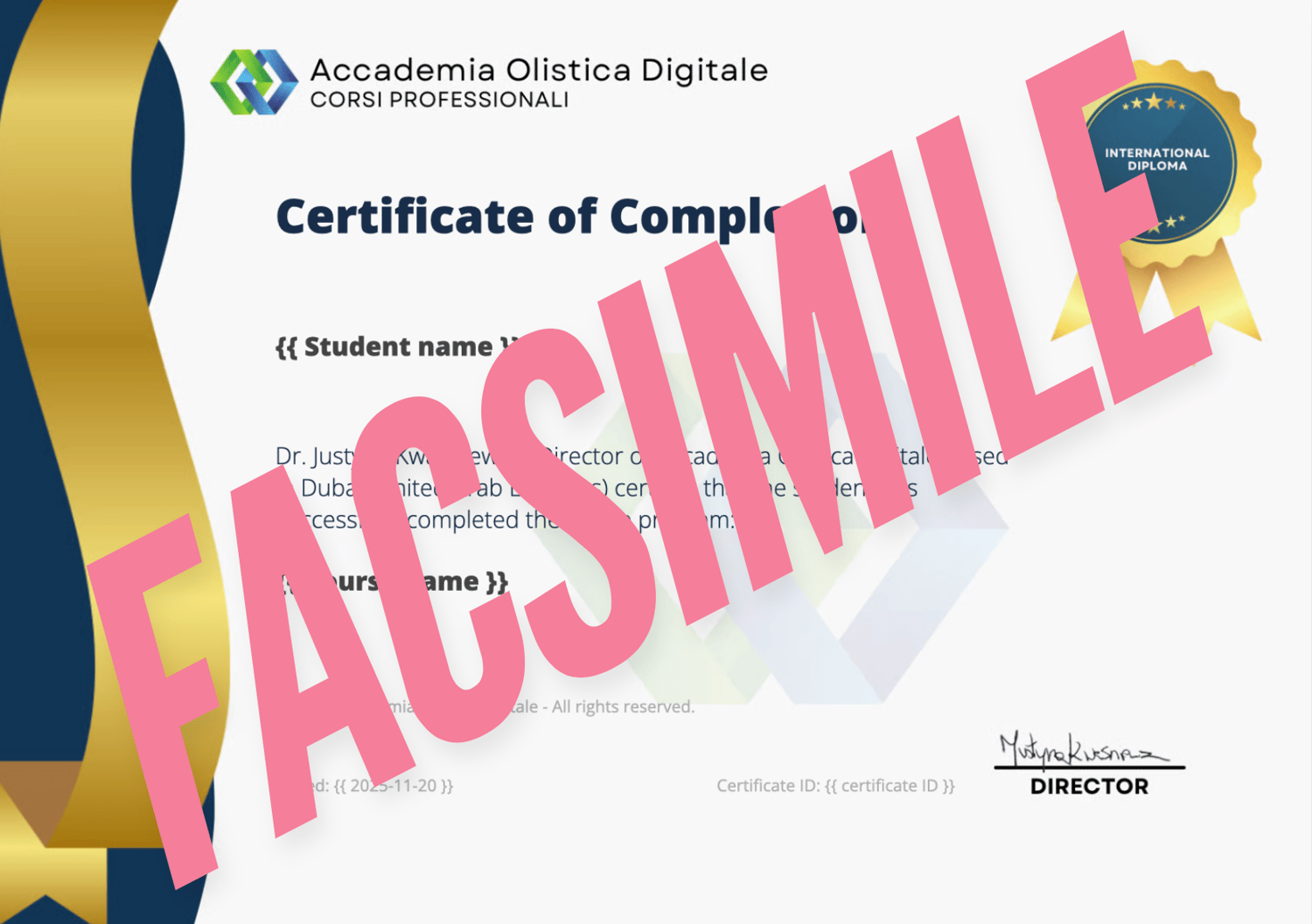 Upon completion of the program, your international diploma will be automatically generated by the Holistic Academy based in Dubai, United Arab Emirates.
