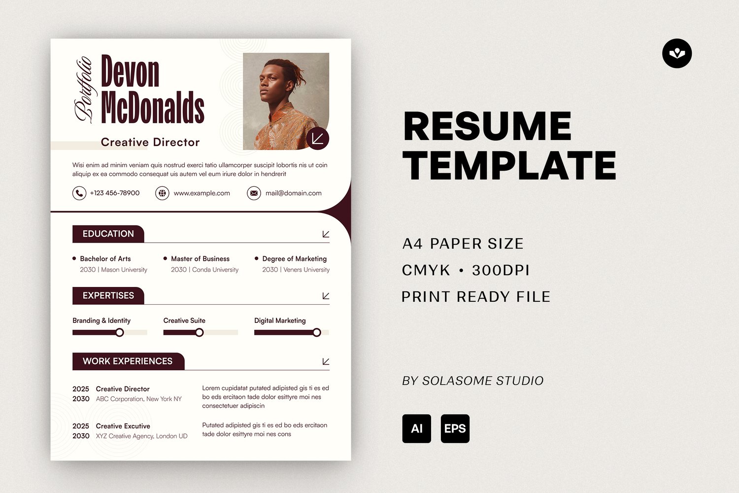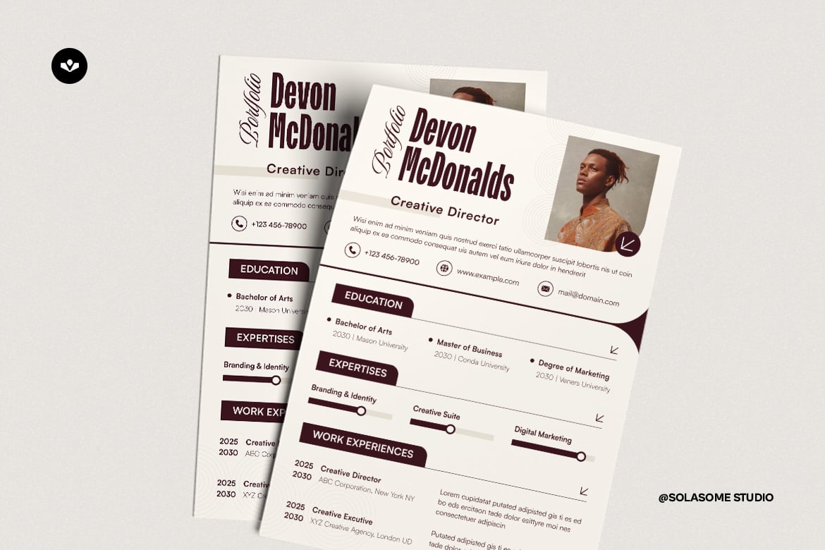 Create stunning and professionals CV Resume to make strong impression at the hiring company. It’s perfect for creative professionals, job seekers and entrepreneurs. This design enables users to present their professional journey, experience and achievements in a visually appealing and clarity style. No recruiter or hiring manager can refuse. This highly versatile template make it ideal for various contexts and professions.