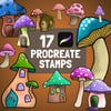 Enjoy create commercial approved clipart super fast with this hand-illustrated mushrooms and mushroom homes brush set of Stamps!