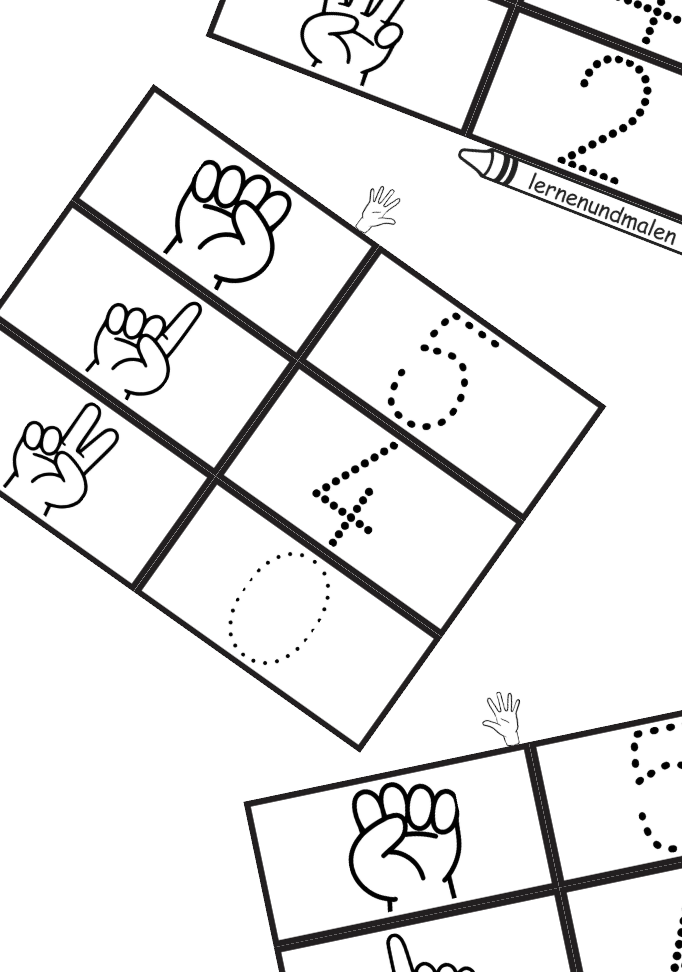 - die passende Zahl in gepunkteter Schrift, die dein Kind nachzeichnen und richtig zuordnen kann.