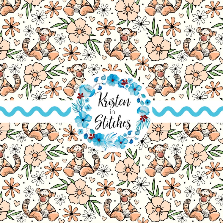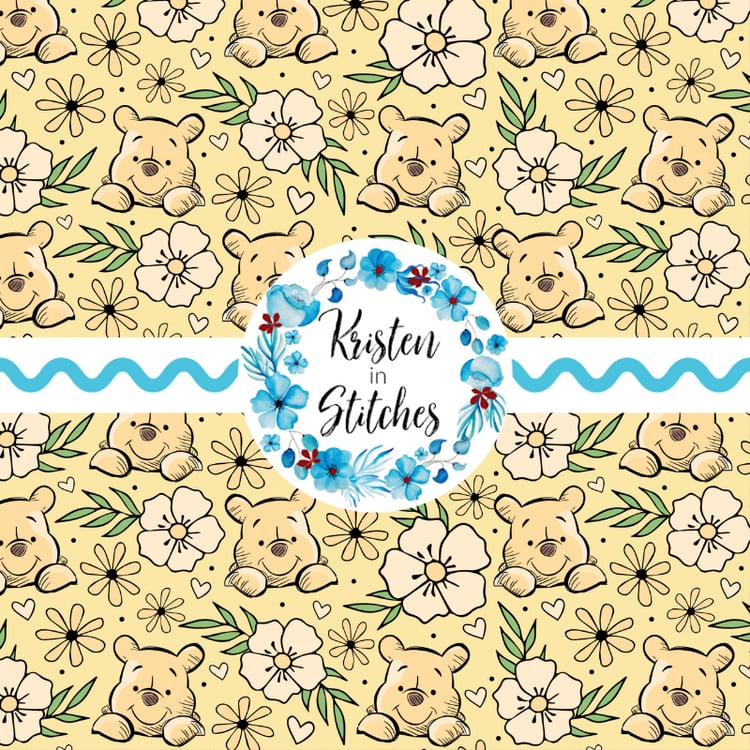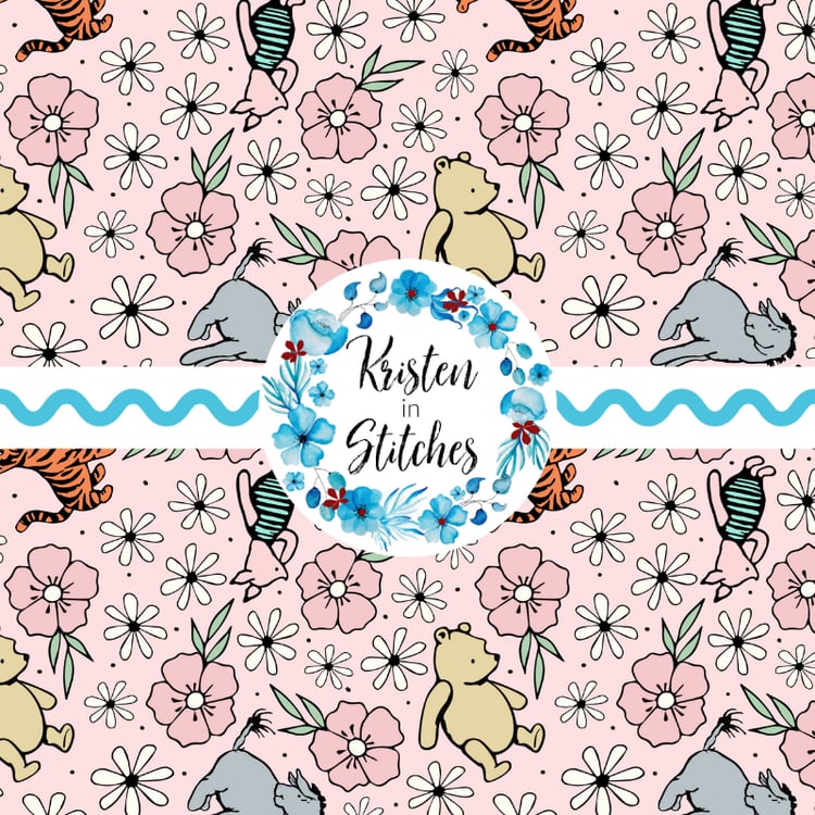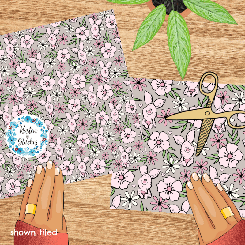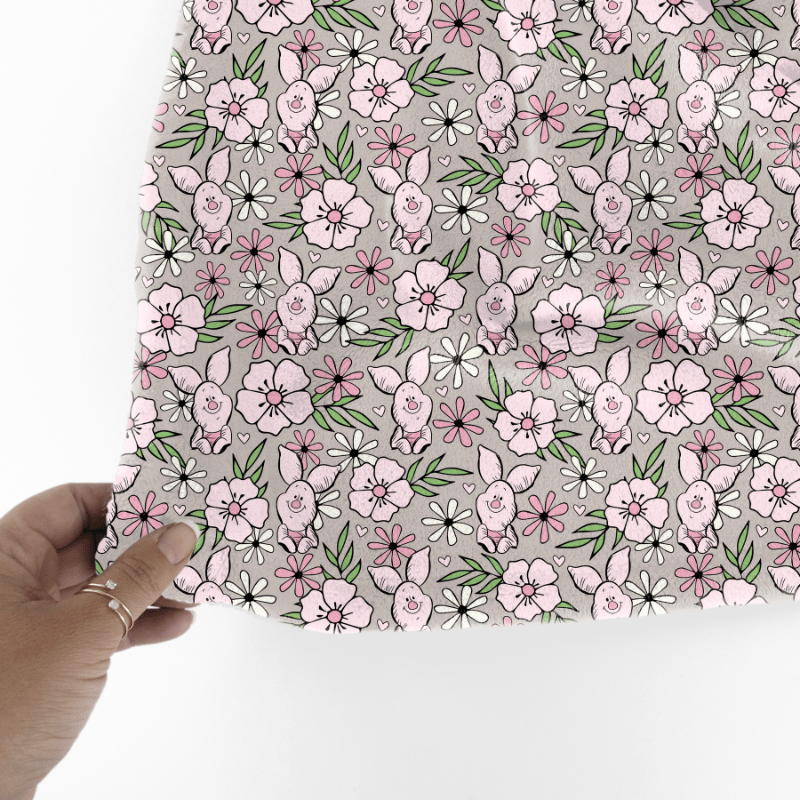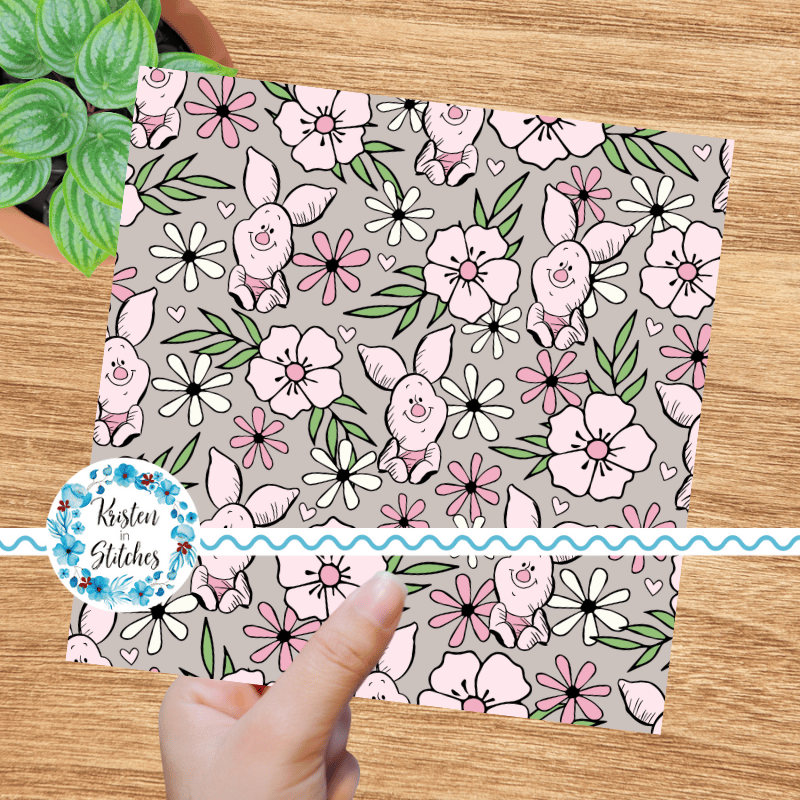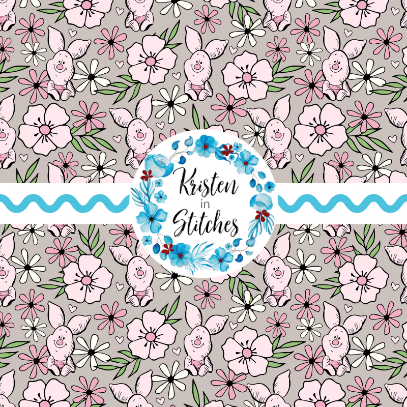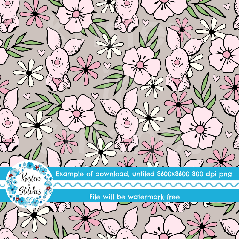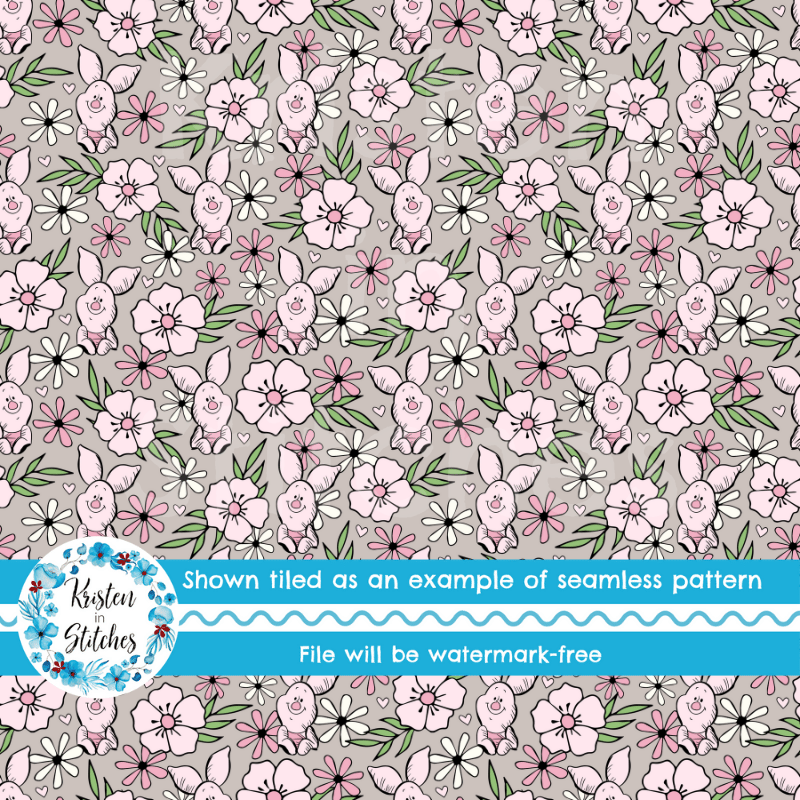 Piglet Floral Seamless Pattern, Classic Winnie the Pooh Nursery, Taupe
