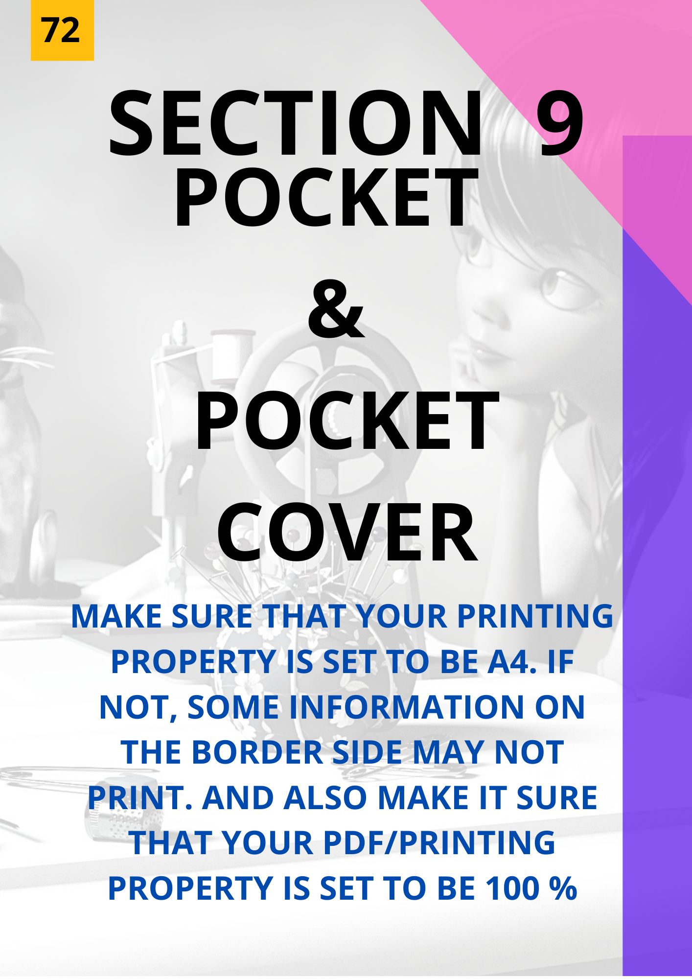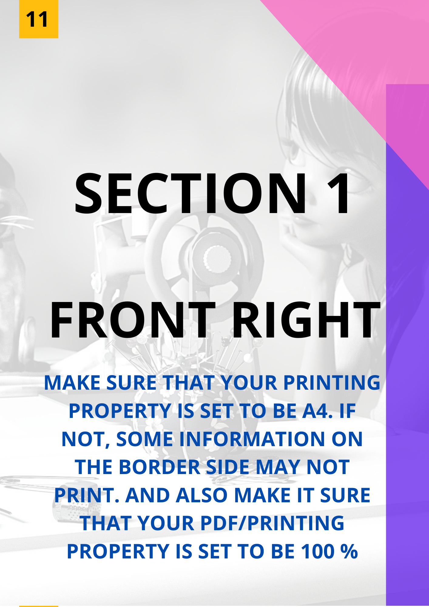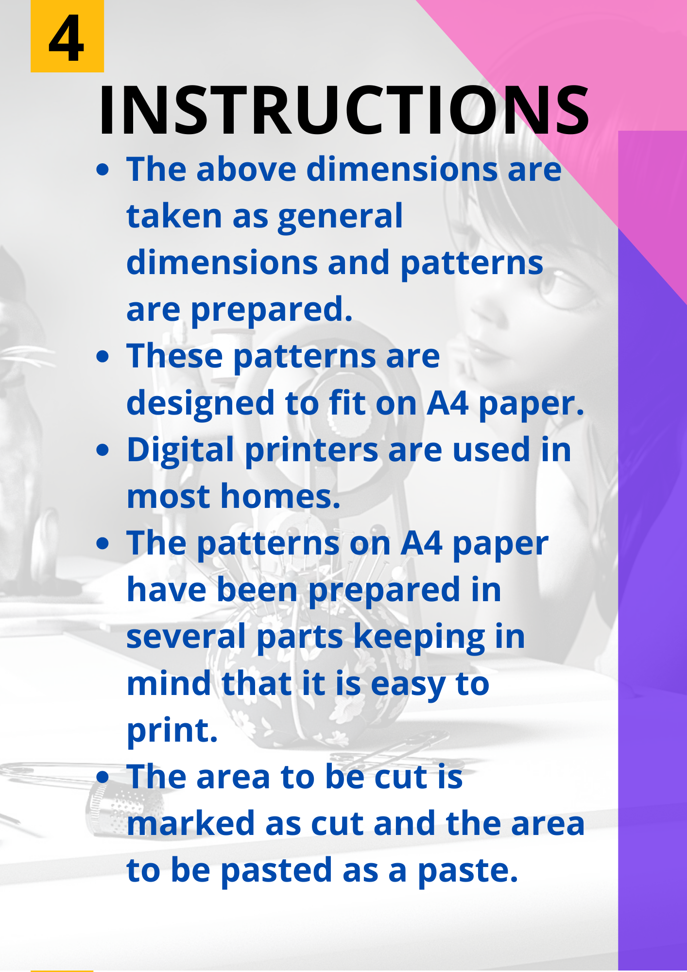 The patterns on A4 paper have been prepared in several parts keeping in mind that it is easy to print.