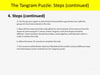 The Teambuilders series from Manage Train Learn is a collection of 43 classic and original teambuilding exercises which are ideal for groups who want to improve their teamwork and teambuilding skills. There are 14 categories in the collection, including "Design and Build Games", "TV-Based Games"; and "Outdoor Games". Each teambuilder is a PowerPoint slide presentation and comes with full instructions, steps, timings, and worksheets meaning you have everything you need to run a successful exercise. Having used these teambuilders in the training room many times, we can guarantee that, after you run one of these Teambuilders, your team will grow in confidence and spirit, right before your eyes. This presentation is "The Tangram Puzzle" and consists of 17 slides in the Geometric games category.