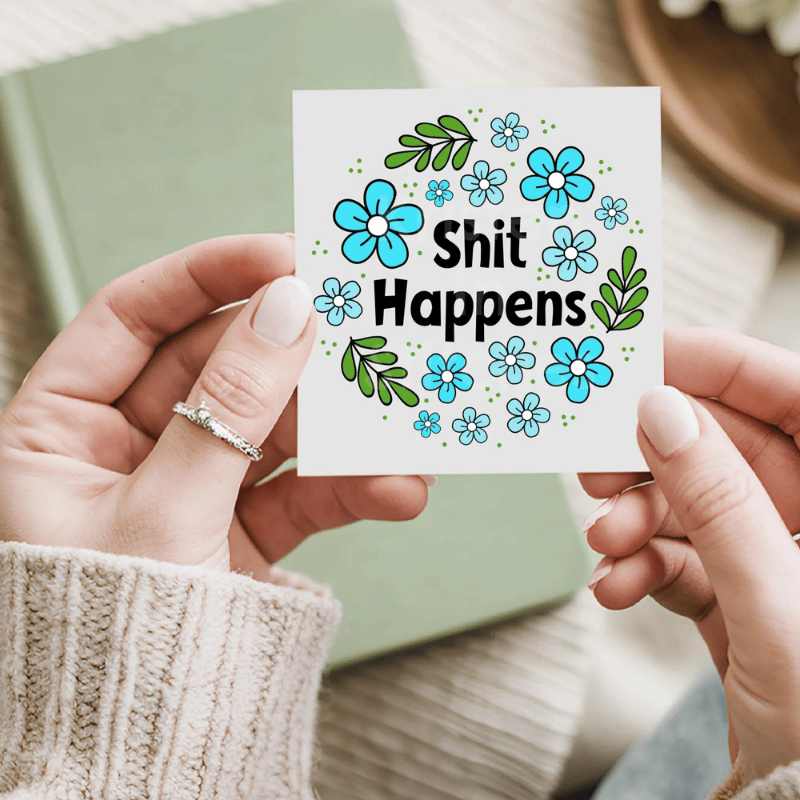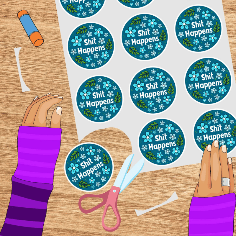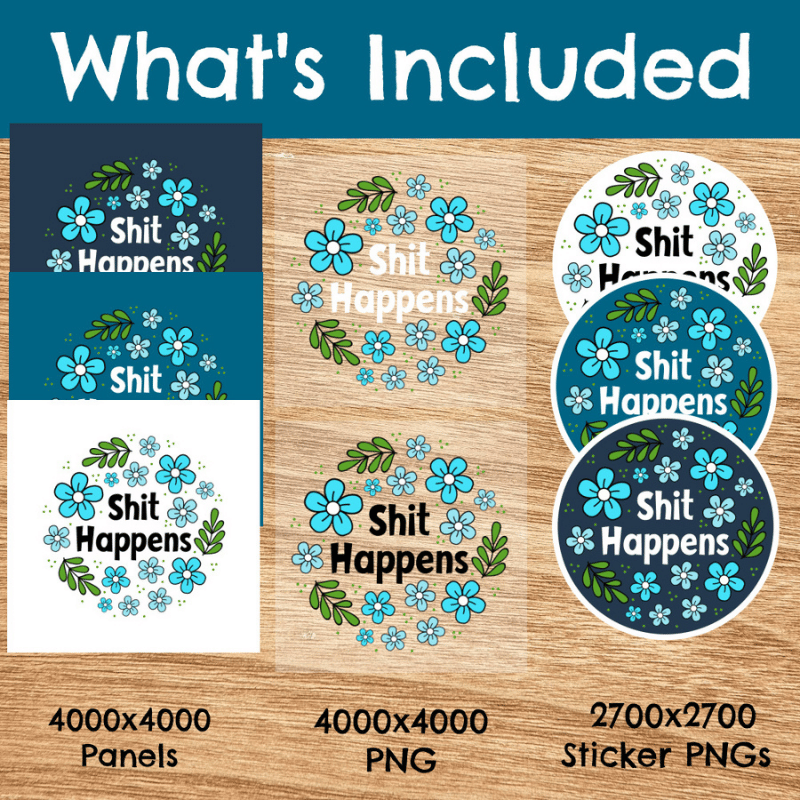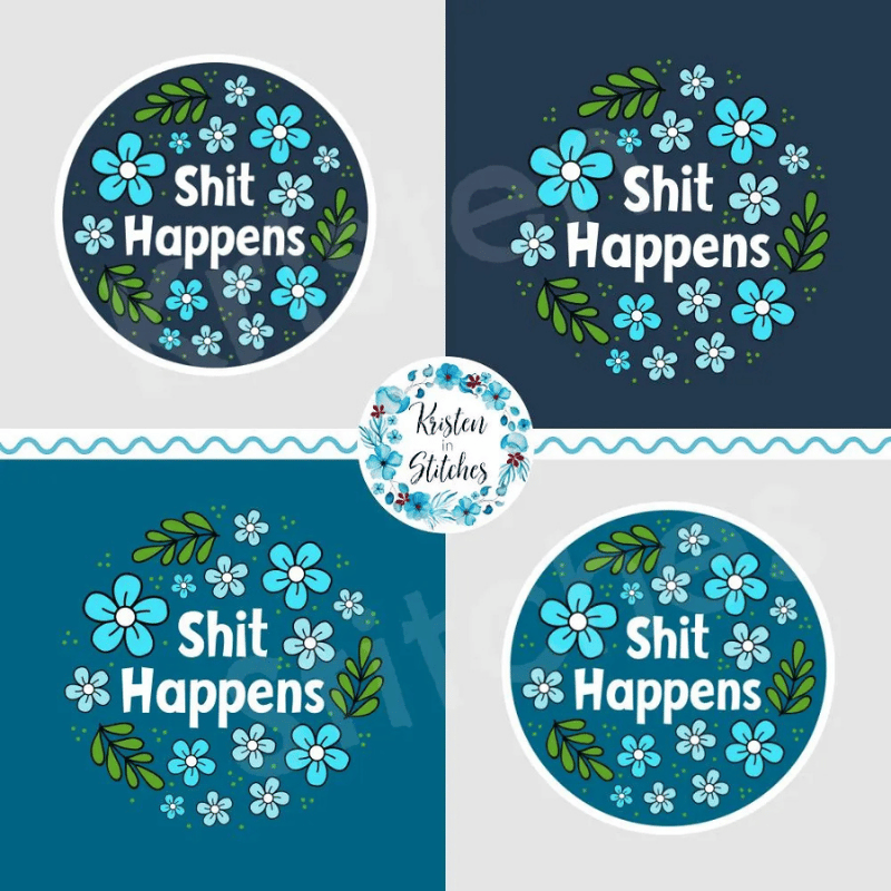 Shit Happens! sweary graphics for stickers, badge reels, jar and candle labels, uv dtf transfers, shirts, digital journals and so much more!