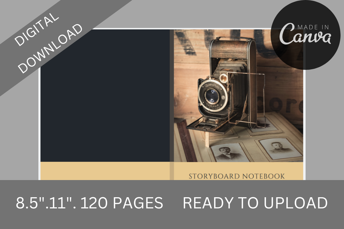 colleagues and clients too. Use this notebook to flesh out ideas for client presentations or to collaborate with your team. Each page contains 4 storyboard panels with unlabelled sections you can customise to suit your individual workflow.