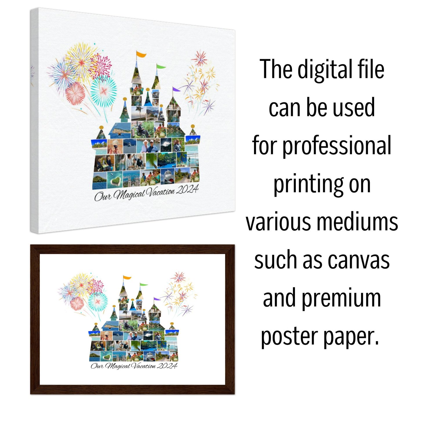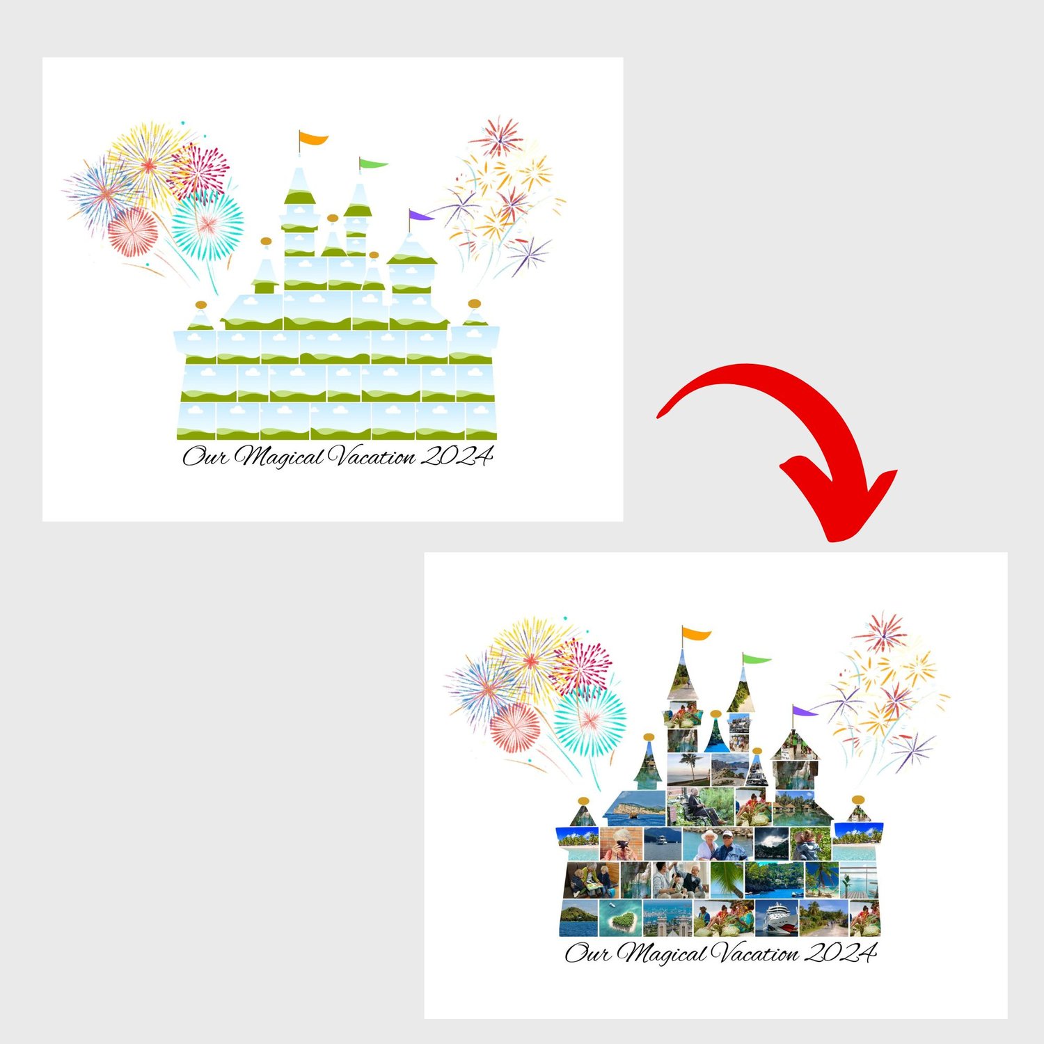 Magical Vacation, Castle Photo Collage Frames For 40 Photos, Editable Canva Template