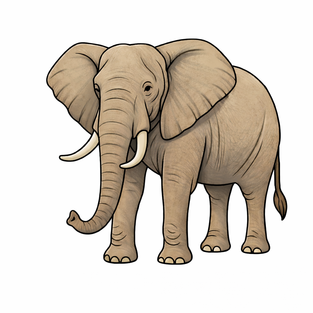 - Single, full-body African elephant