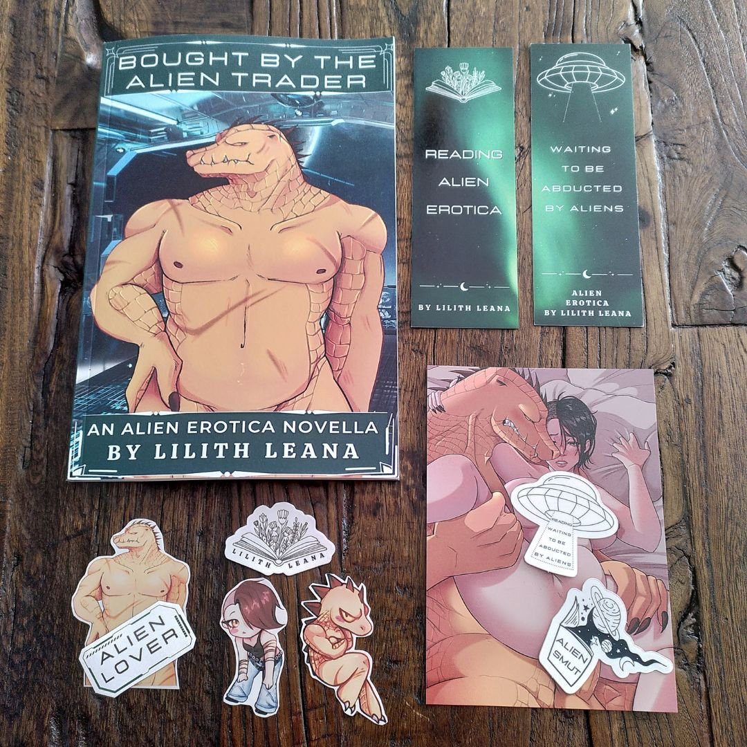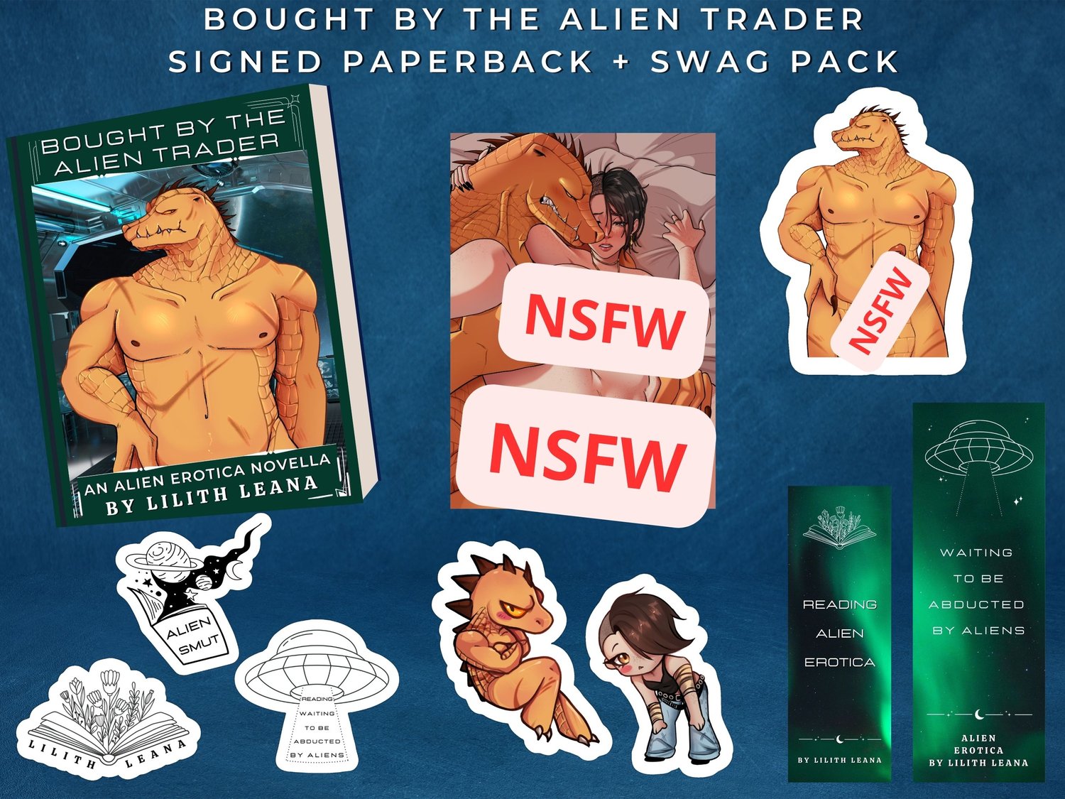 Signed Paperback of Bought by the Alien Trader by Lilith Leana with the Jaxx Swag Pack.