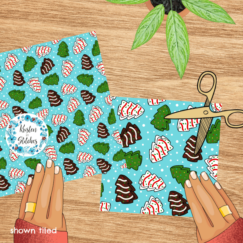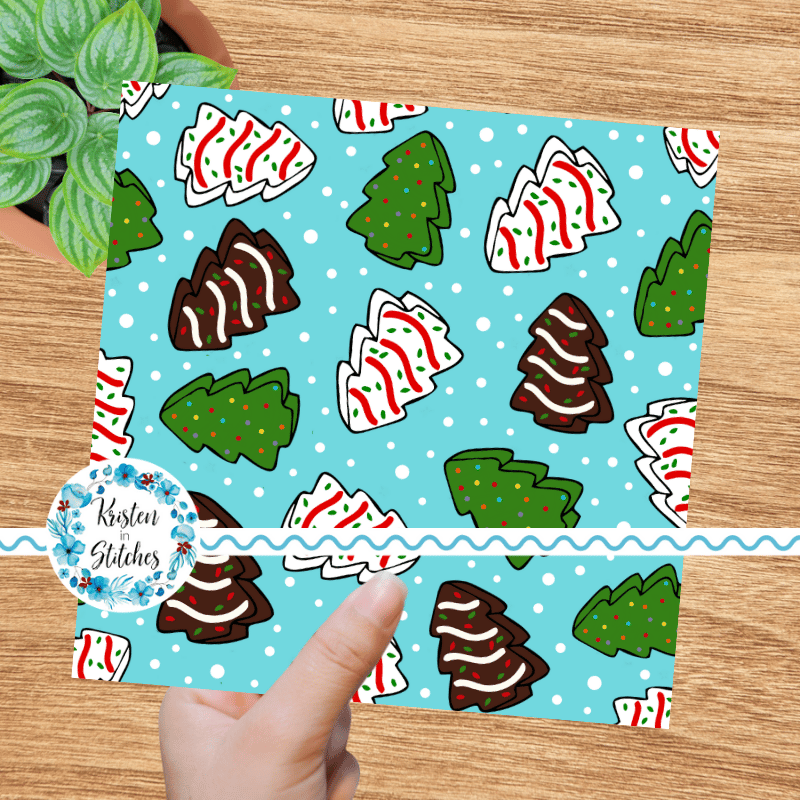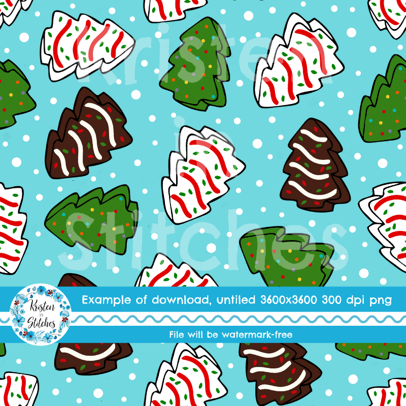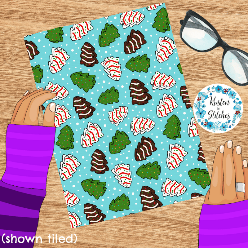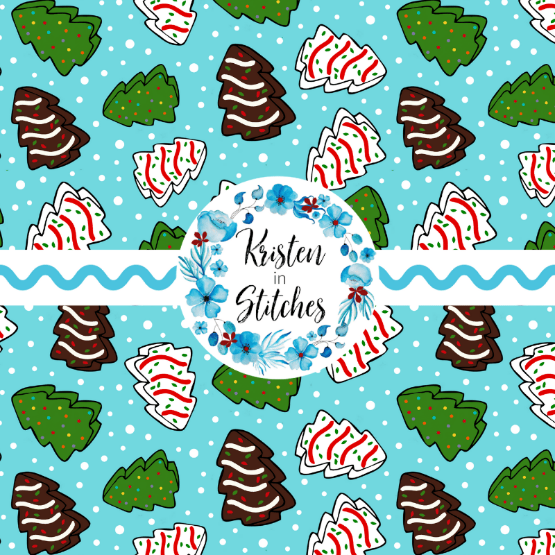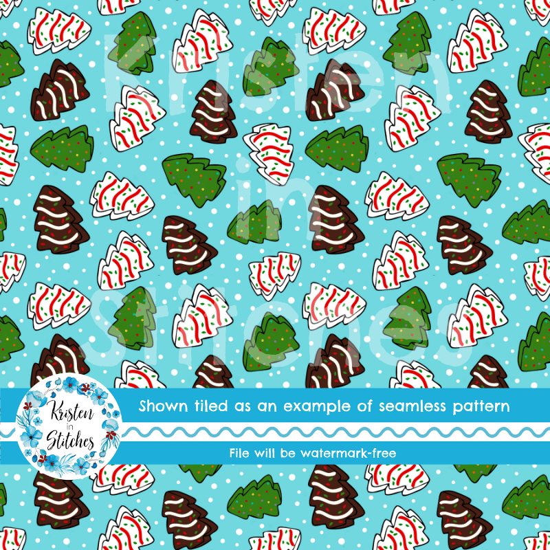 Christmas Tree Snack Cakes Little Debbie Cakes Seamless Pattern Blue
