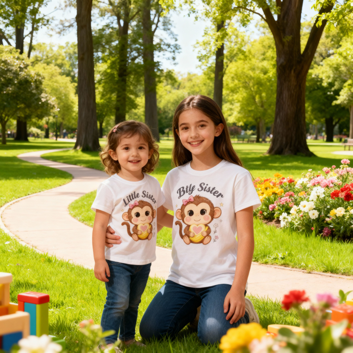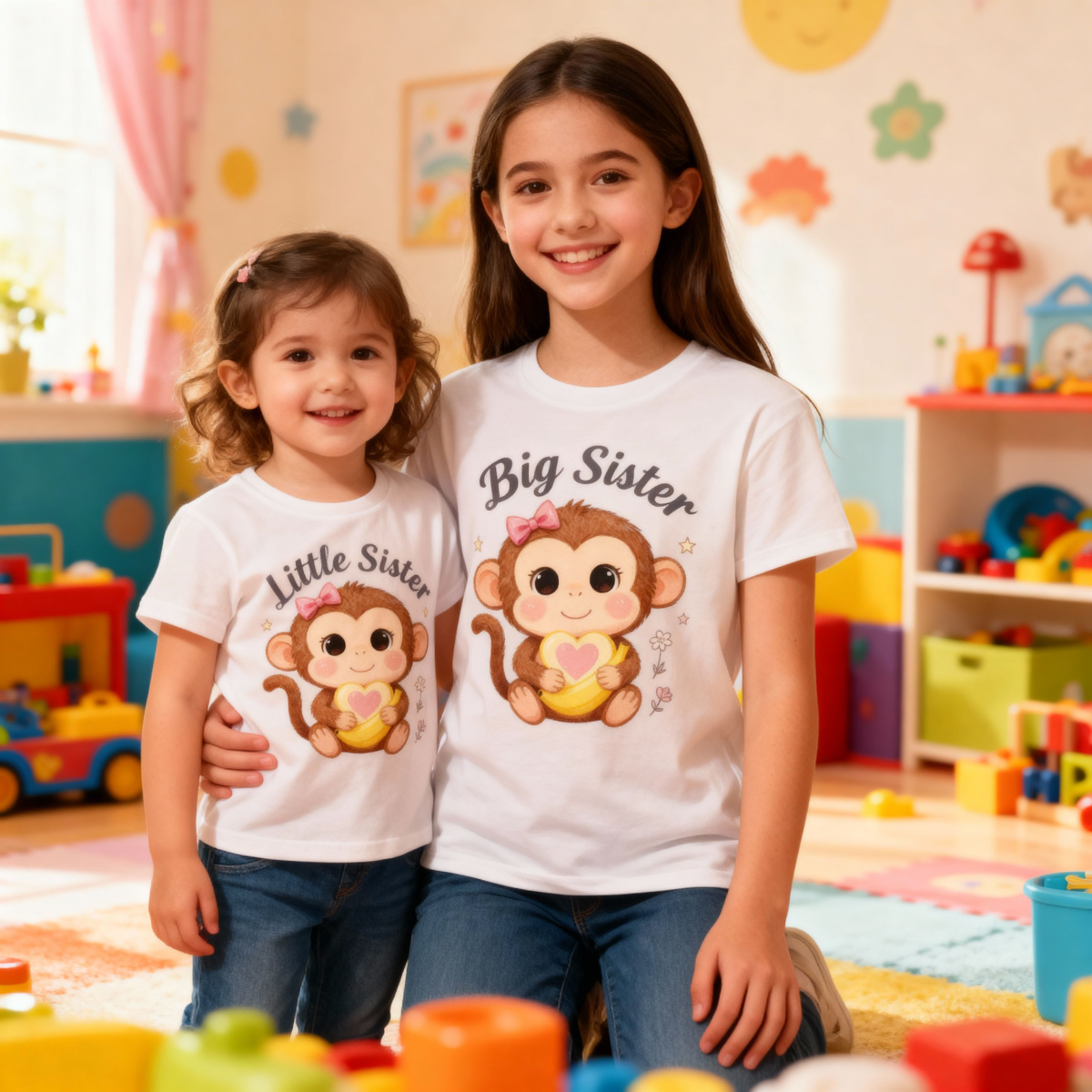 Big Sister & Little Sister Monkey Bundle šµ | Cute Digital Download for Sublimation, Nursery Decor & Kidsā Apparel