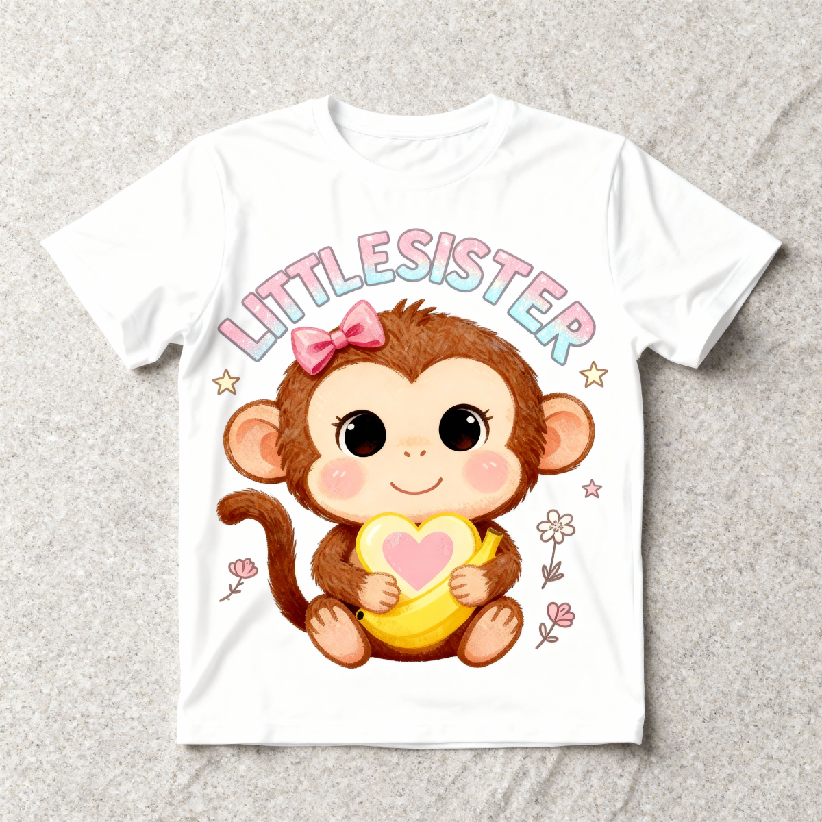 Each design features an adorable cartoon monkey holding a heart-shaped banana with rosy cheeks and a pink bow ā perfect for baby gifts, kidsā clothing, or sibling wall art. The pastel tones and soft details make these files perfect for any cozy or playful project.
