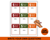 1 X PDF (14 Pages): includes 108 game cards, Instructions and 1 Blank Template template.