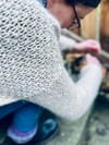 Biches & Bûches Le Gros Lambswool in Strängen à 100g mit 192m / 210yards ; aran weight zweifädig verstrickt mit Gepard Garn Kid Seta in Knäuel à 25g mit 212m/231yards. Hier in der Farbe Ecru in Grösse M (siehe Fotos)