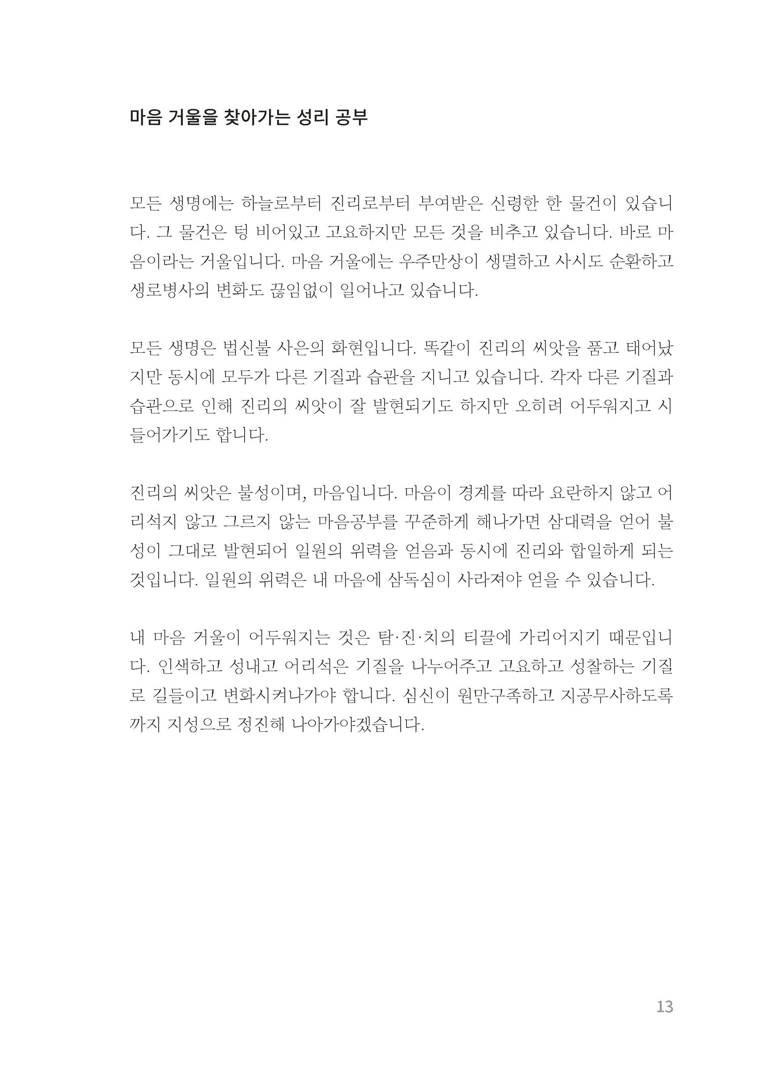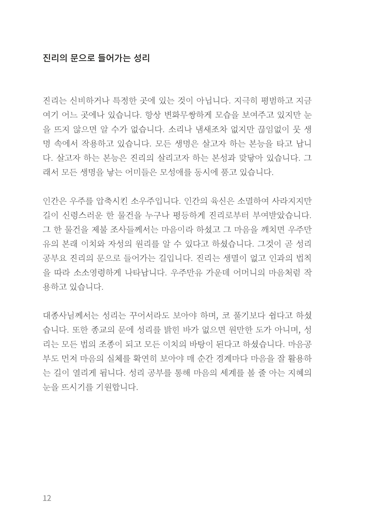물을 찾는 물고기 (성리, 교리, 도리와 수심결) : A Fish Searching for Water (The Principle of the Nature, the Doctrine, the Moral Principle, and Secrets on Cultivating the Mind)