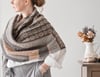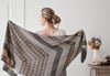 Sunweavers is an asymmetrical shawl starting with an increasingly growing arrow shaped construction that transitions into a different decrease and increase ratio at its mid-point to reach the final shape.