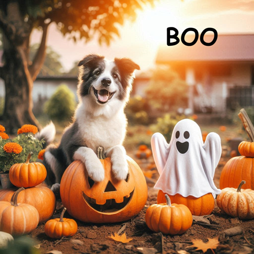 Halloween theme dog and ghost, Boo. You get a PNG file 1024 x 1024 pixels.