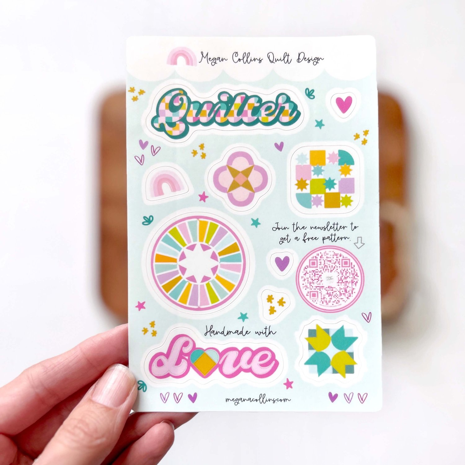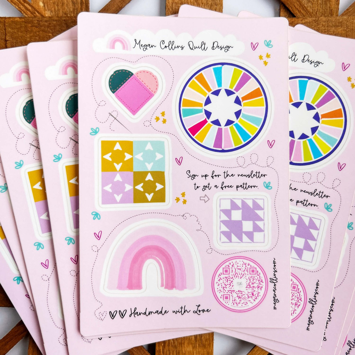 Two sticker sheets featuring designs pulled from my quilt patterns. Perfect for sewing journals, planners, or just adding a little quilt joy to your workspace.