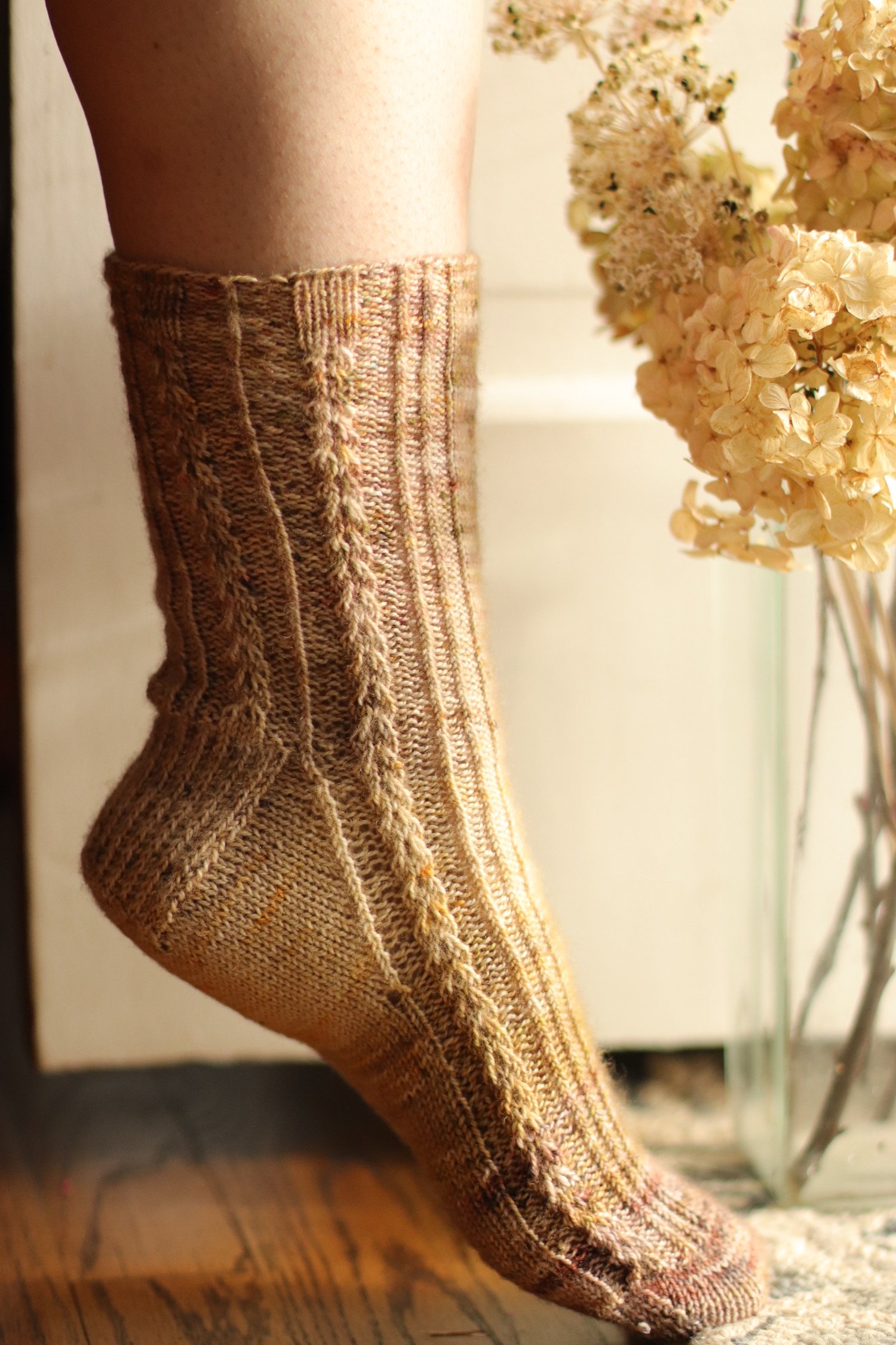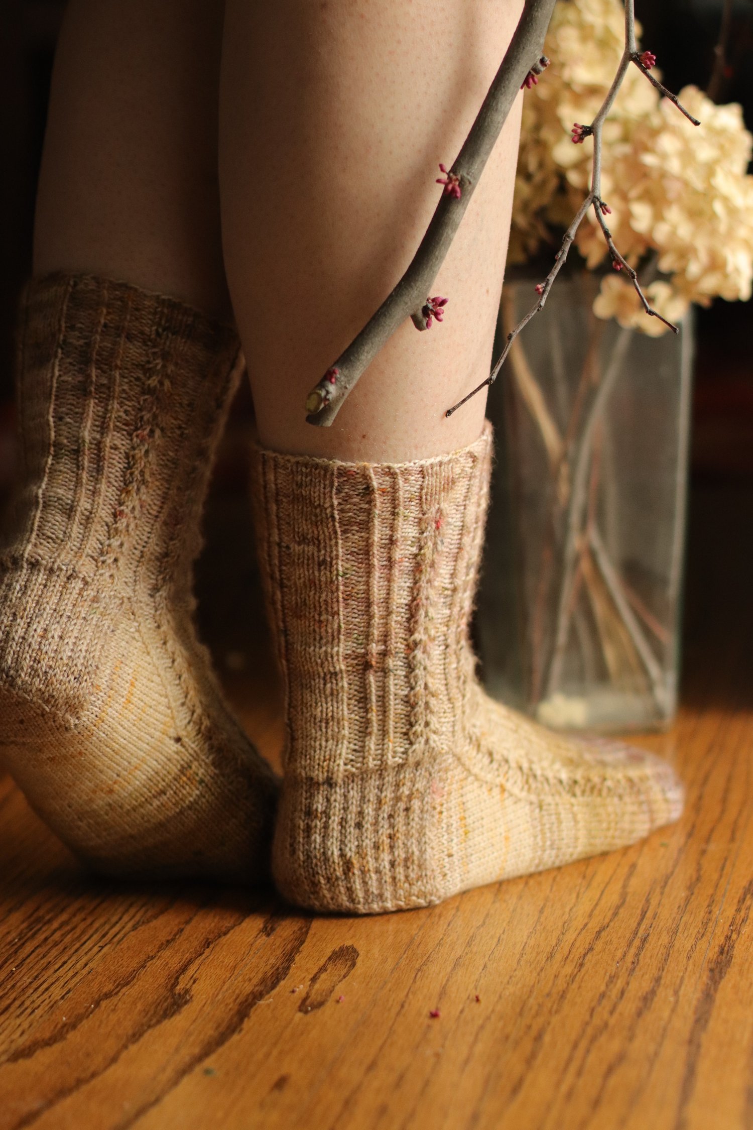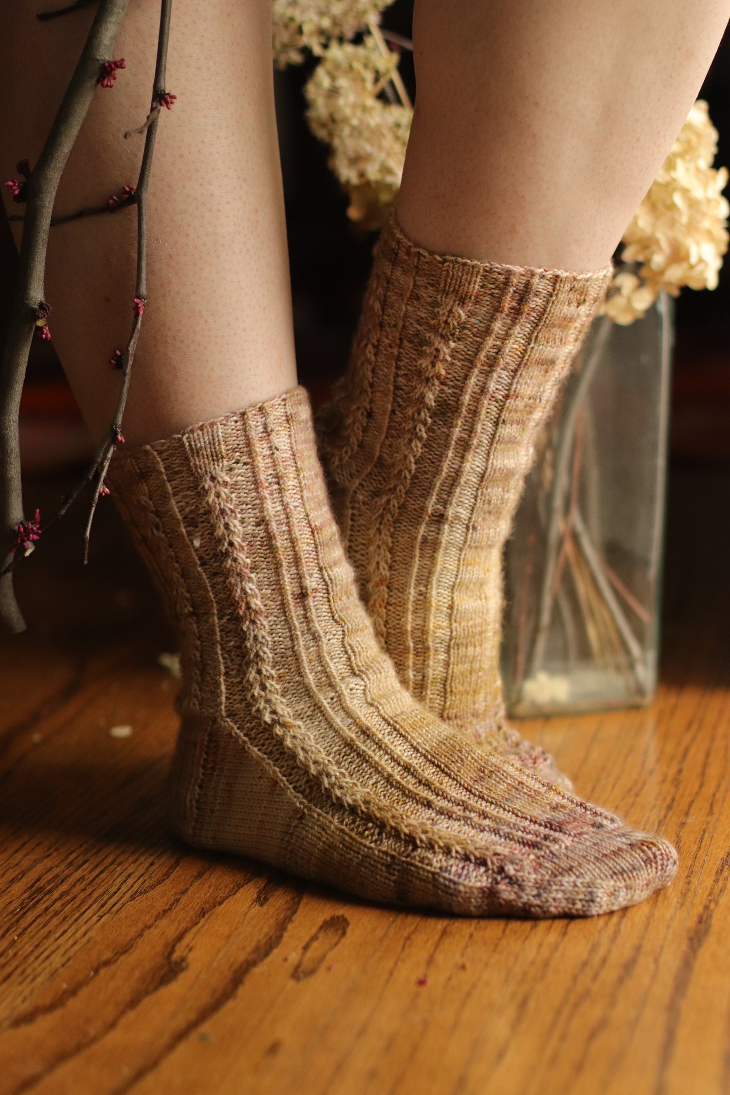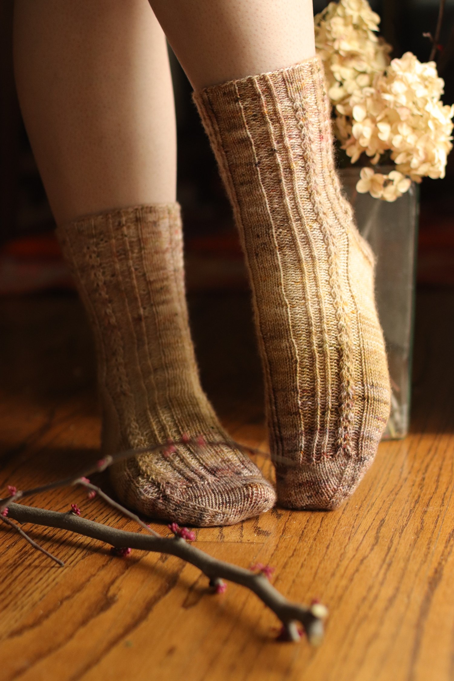Cream: Knotty Pine Fiber Co. Bighorn Sock, pattern variation B