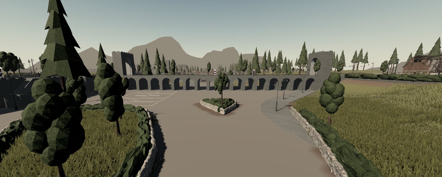 • Realistic railway track cutting through the terrain, ideal for supply transport roleplay or scripted train events.