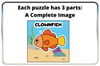 - The image with an outline to guide the child in assembling the parts into completing the puzzle