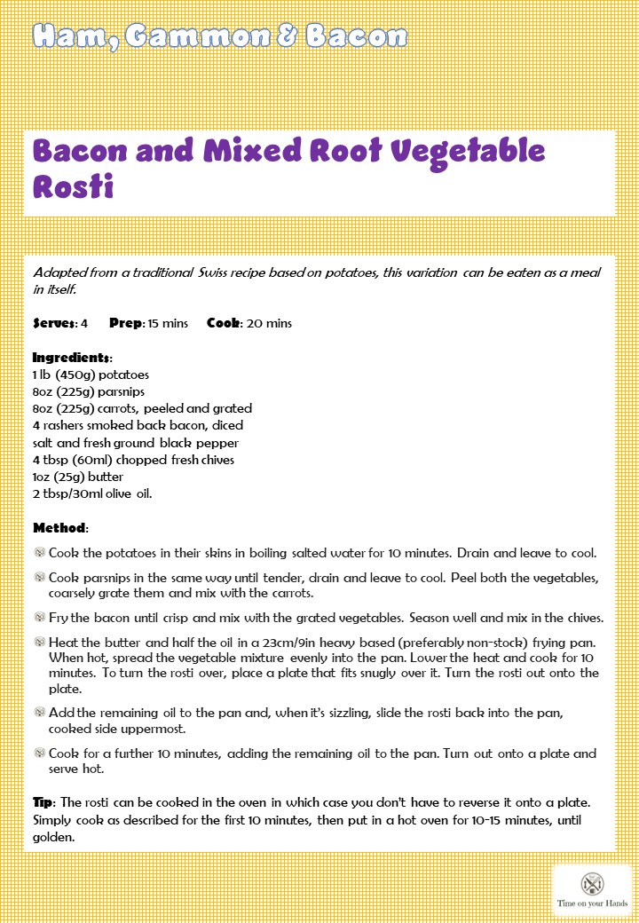 Bacon and Mixed Root Vegetable Rosti - Recipe Card