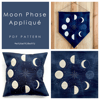 Mother Nature is the best designer and I felt like this Moon Phase Appliqué pattern designed itself! I love hand-sewn, needle turn appliqué and the phases of the moon offer so many opportunities to sew curves. I've designed an appliqué panel (approx 20" square) that works as a wall hanger, mini quilt or cushion and instructions are included for all those options. In my PDF pattern, you'll receive four files for each stage of the making process, including a 10-page- detailed technique instruction file with 25 close-up colour photos explaining how to use a range of hand-sewn appliqué techniques for preparing the moon shapes and then sewing their curves, points and lines by hand for a beautiful smooth finish. My methods include gathering, using foil, finger pressing and seamline basting as well as how to hand sew and needle-turn inner and outer curves and points. You'll receive five files: