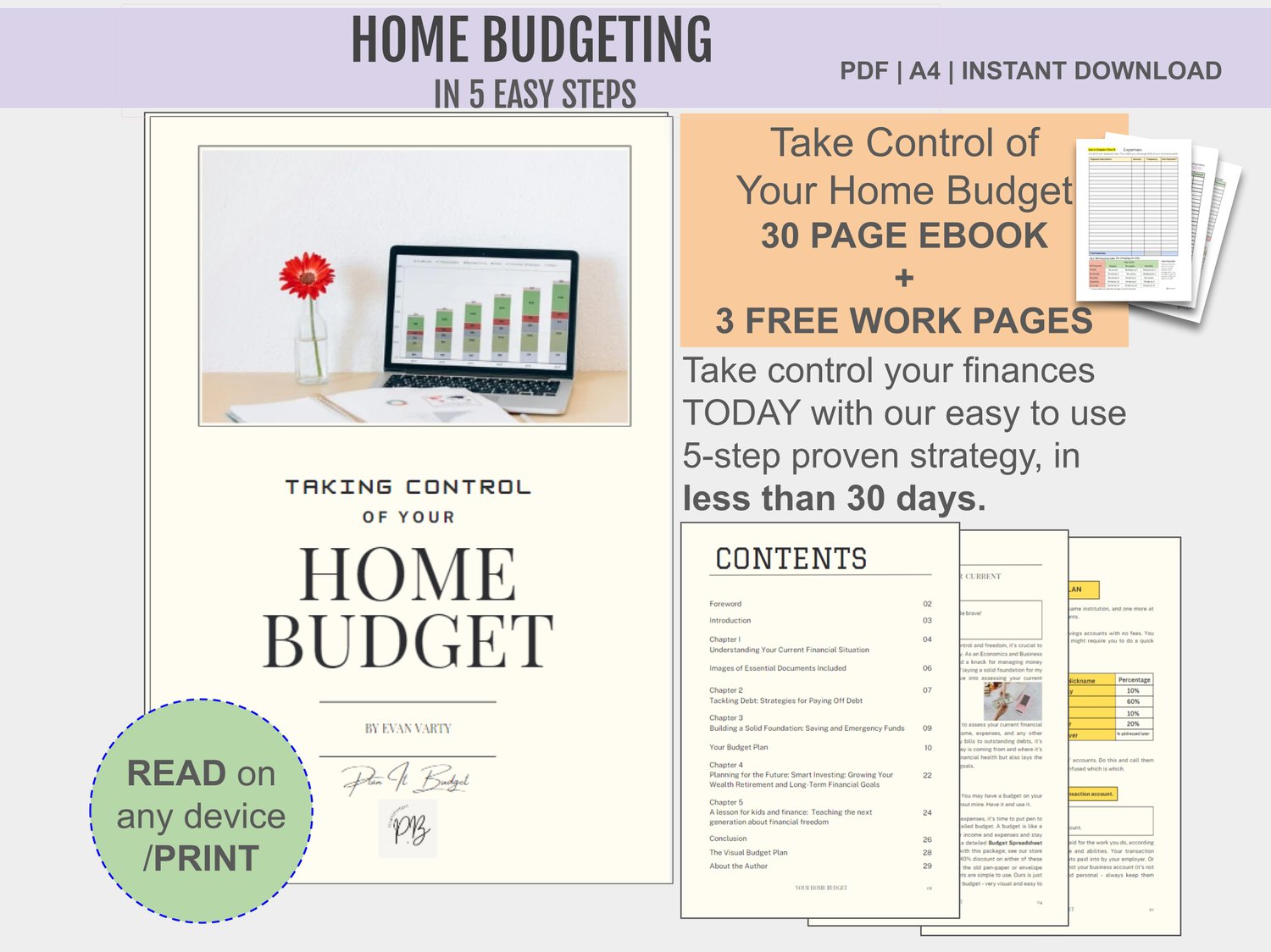 Home Budget in 30 days Made Easy - 30 page eBook Plus free Worksheets