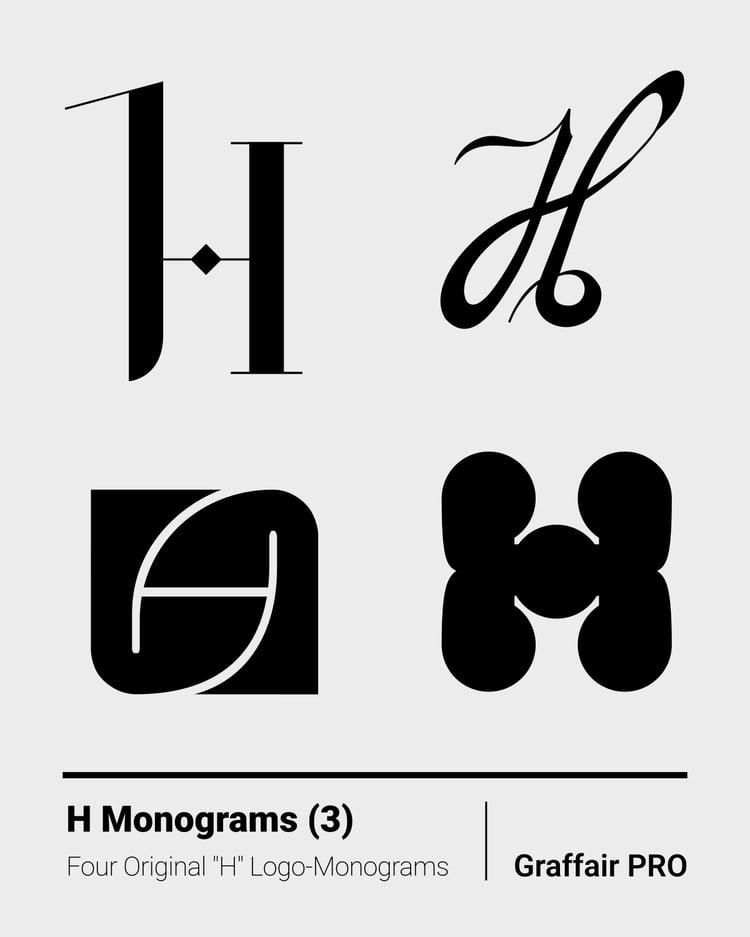 H Monograms (8): The 8th set of four original "H" logo monograms, included in the "1050 SVG Monograms" super package, which also features an Index catalog.