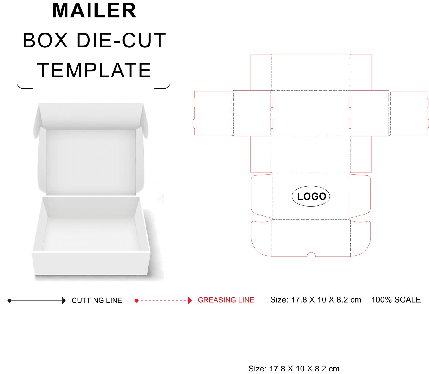 Professional and fully customizable mailer box dieline template — ideal for packaging, e-commerce shipping, and subscription boxes. The dieline is designed for easy folding and strong structural integrity, ensuring your products are securely packed and beautifully presented.