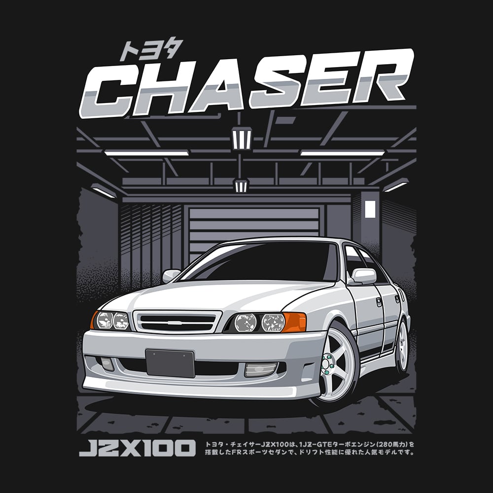 Classic 90s JDM style meets modern artistry in this sleek Toyota Chaser JZX100 Mark II design. Perfect for car enthusiasts, this illustration captures the iconic boxy silhouette, aggressive stance, and timeless appeal of the legendary Japanese drift sedan. Great for posters, stickers, or merc, add a touch of retro JDM flair to your collection!