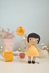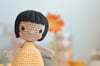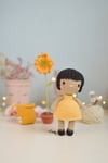 Patrón-guía de tejido en ESPAÑOL/INGLÉS para hacer una muñeca con su mochila y margarita. Muñeca amigurumi Ana.