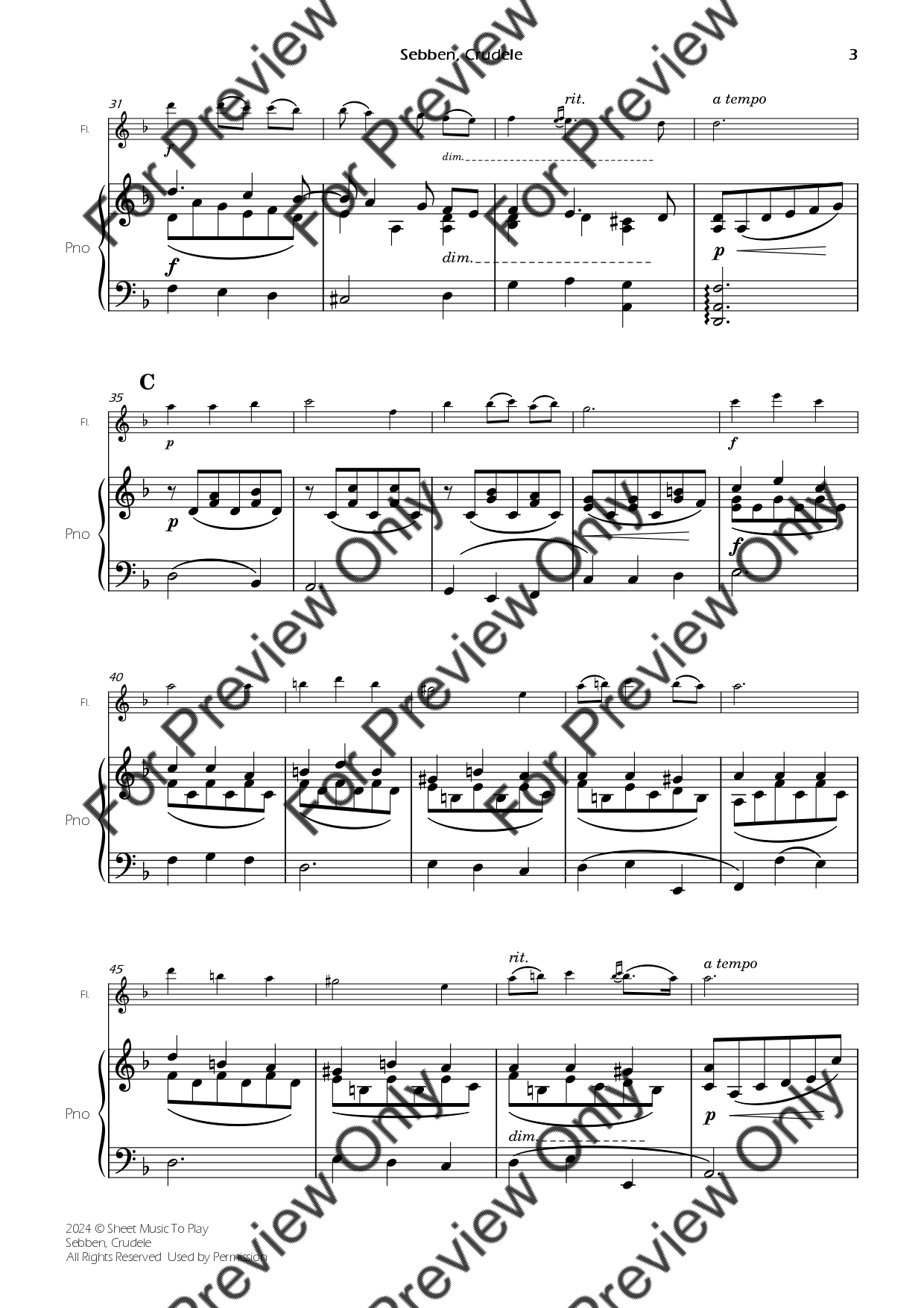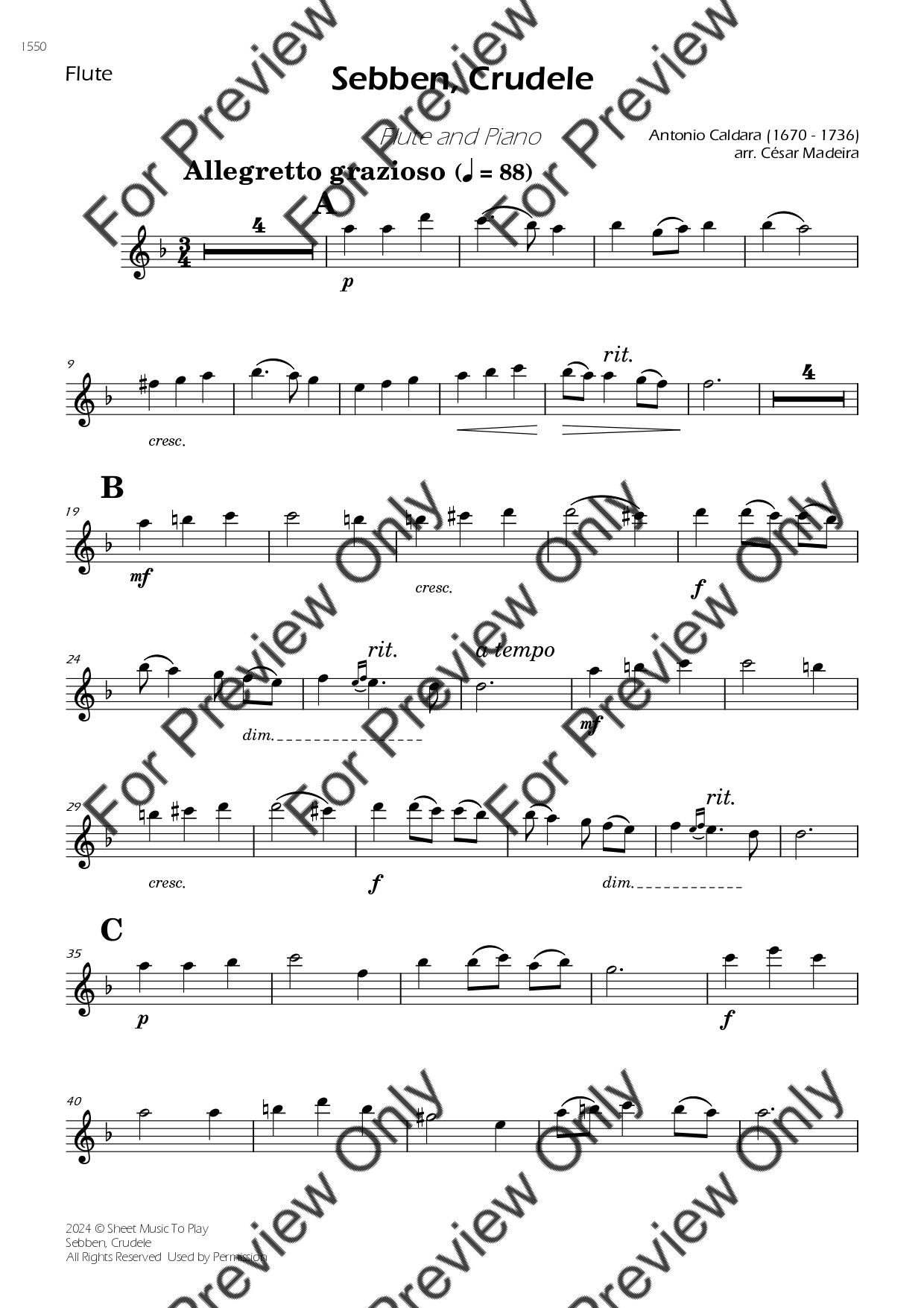 Sebben, Crudele by Antonio Caldara. Arrangement for Flute and Piano. With Full Score and Individual Parts. Have fun!