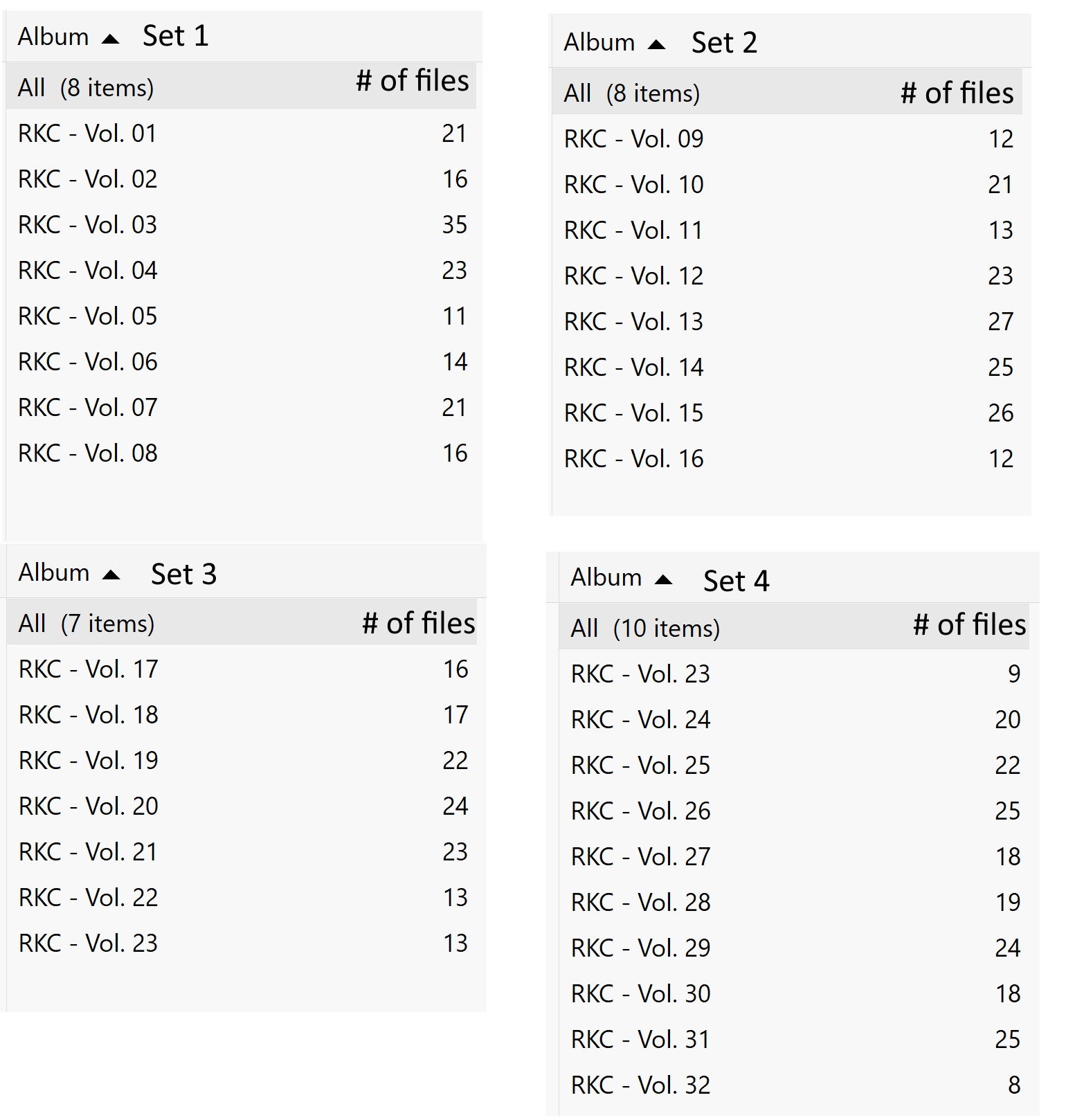 Sets: 4 (A-F, G-K, L-Q, R-Z)