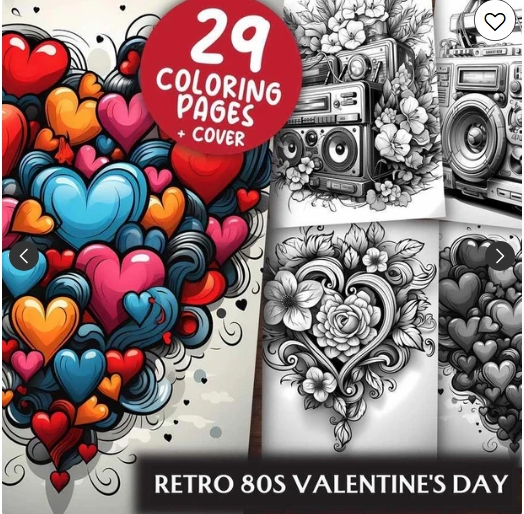 Take a trip down memory lane with our digital coloring book, celebrating love in retro 80s style! From neon hearts to funky patterns, each page invites you to embrace the nostalgia and vibrant energy of the 80s. Let your creativity shine as you add your own colors, capturing the fun and flair of this iconic era in every stroke.