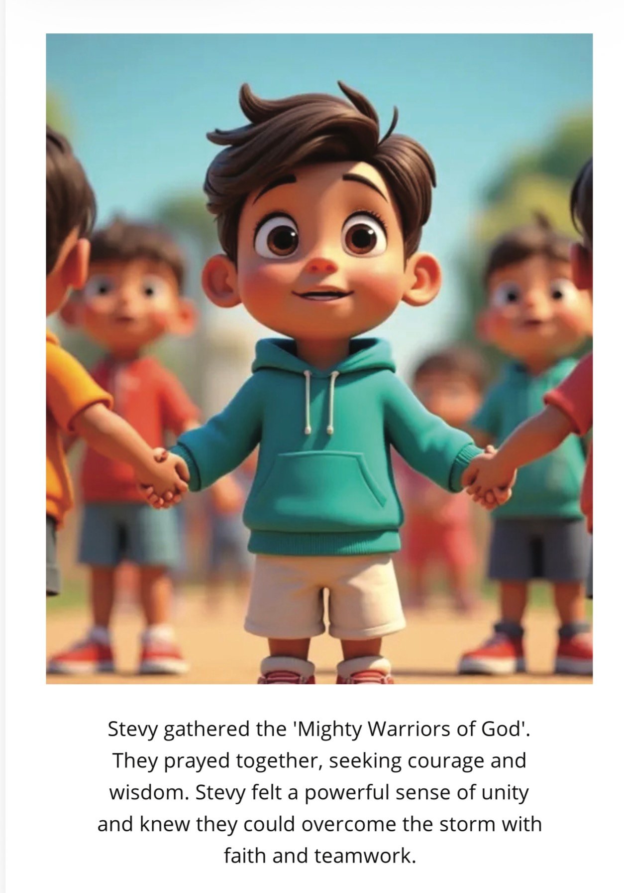 As Stevy prays for strength and boldly steps into his purpose, children learn that bravery doesn’t always look like fighting battles. Sometimes it looks like kindness, teamwork, compassion, and trusting God every step of the way. Inspired by Stevy’s example, the children in his village form their own group—the “Mighty Warriors of God”—promising to serve others and spread God’s love wherever they go.