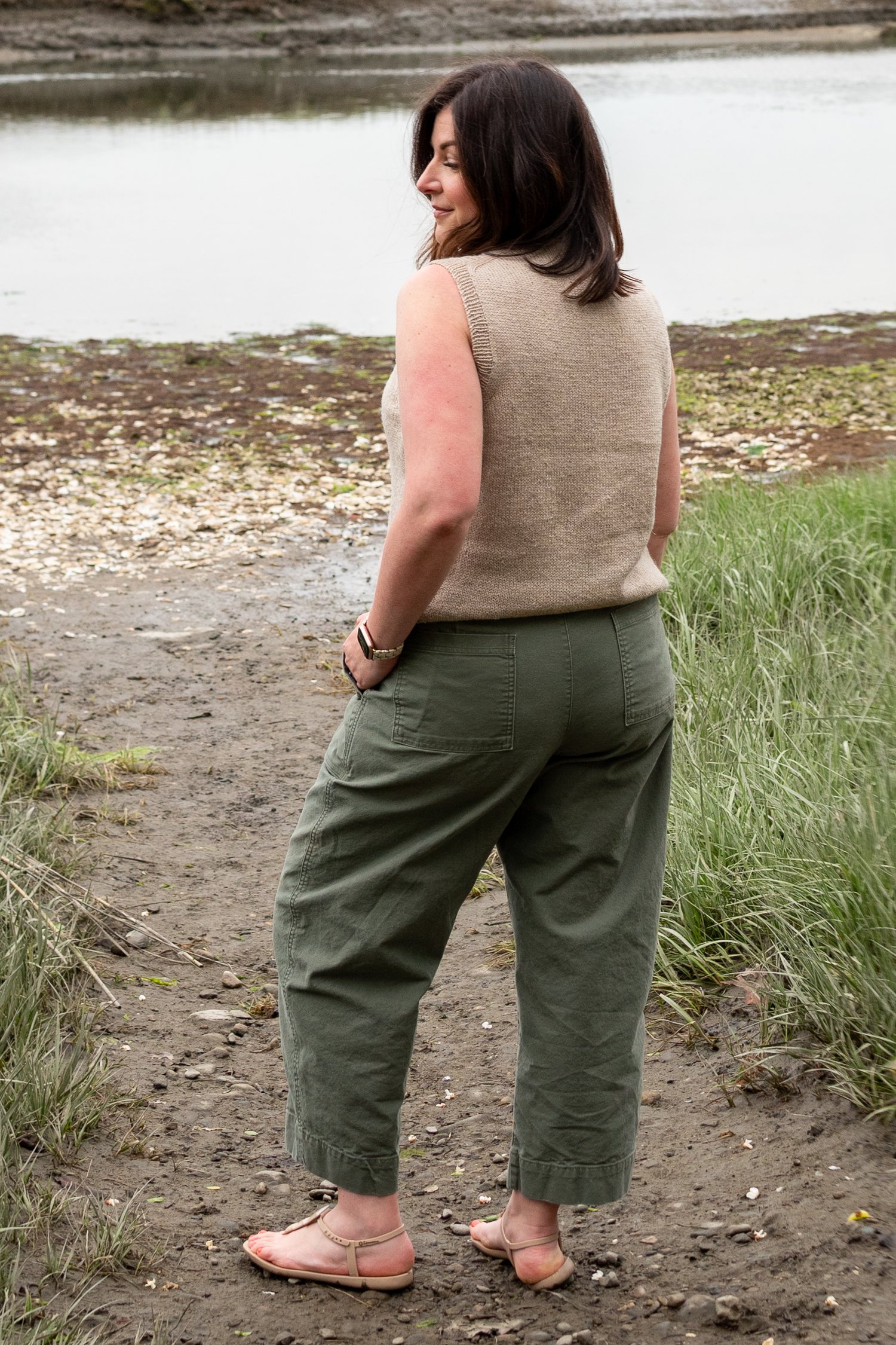 Summer Session is intended to be worn with 2–4” / 5–10 cm of positive ease. Select a size 2–4” / 5–10 cm larger than your chest circumference. Measurements below are for the finished garment after blocking. Samantha wears size 4 with +2.25” / 5.5 cm of positive ease and is 5’6” / 167.5 cm tall.