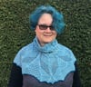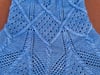 The blue sample with a dark blue edging was worked in Fyberspates Vivacious 4 ply. Because the skein is 365m there isn’t quite enough in one skein, which is why the last row and cast off were worked in a second colour.