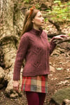 Stitch magic. A dramatic diamond cable design is worked in pieces from the bottom up, then sewn together after blocking.