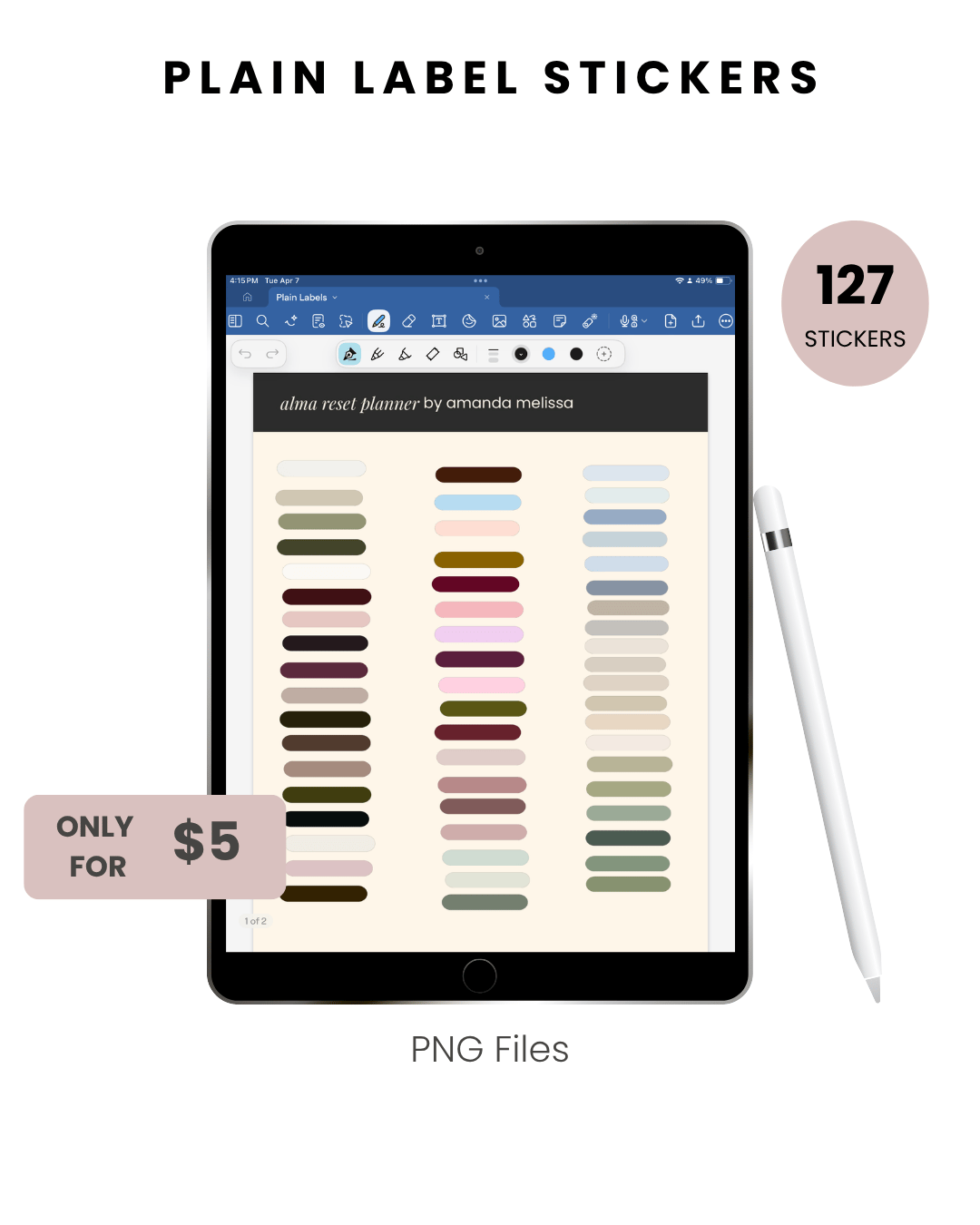 Use these plain label stickers to plan or organize on Goodnotes. 127 PNG Files.