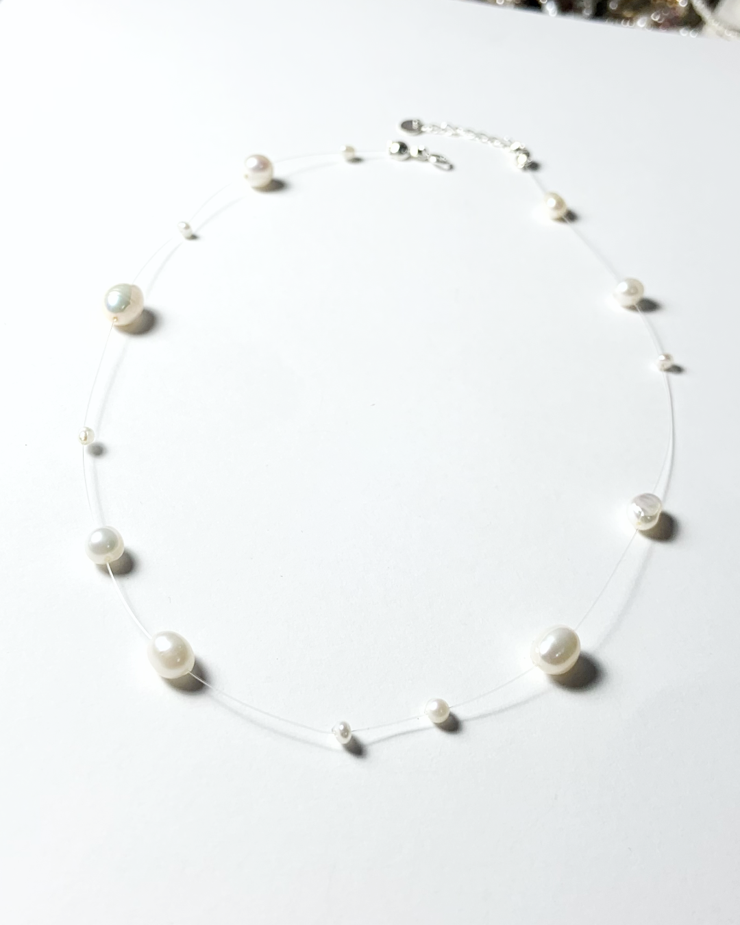 珍珠自然垂墜在頸間,像清晨留下的露珠。