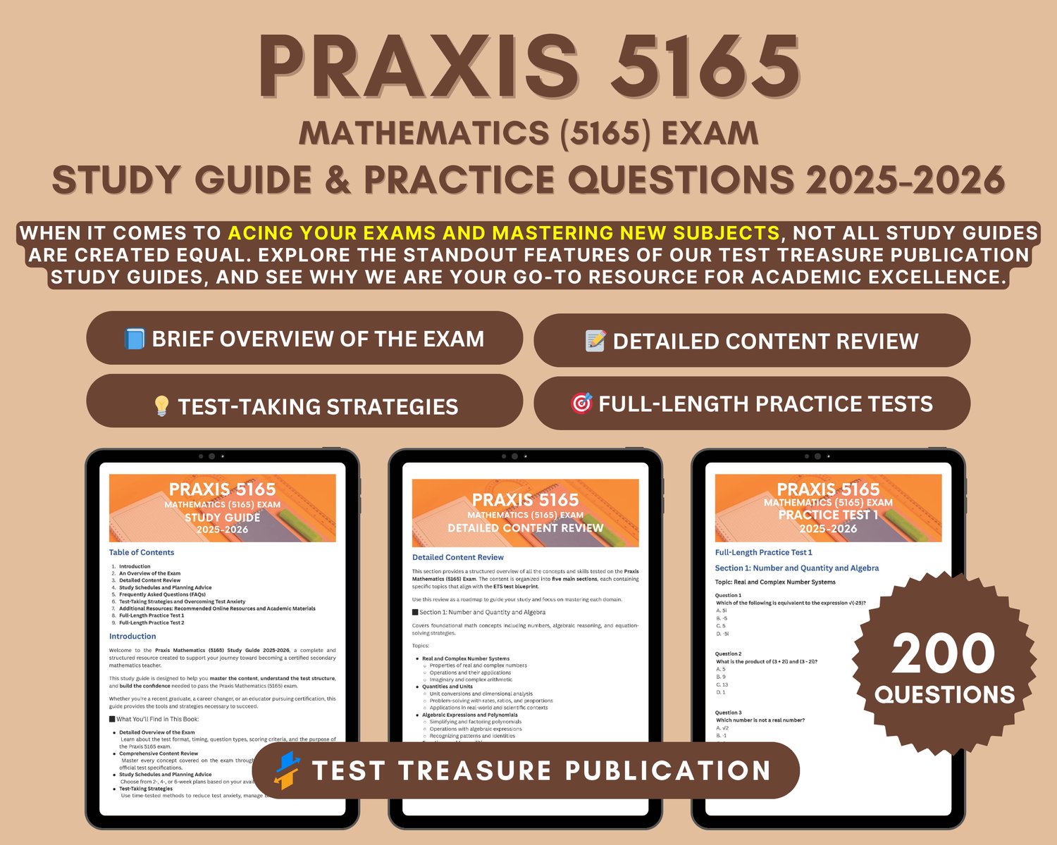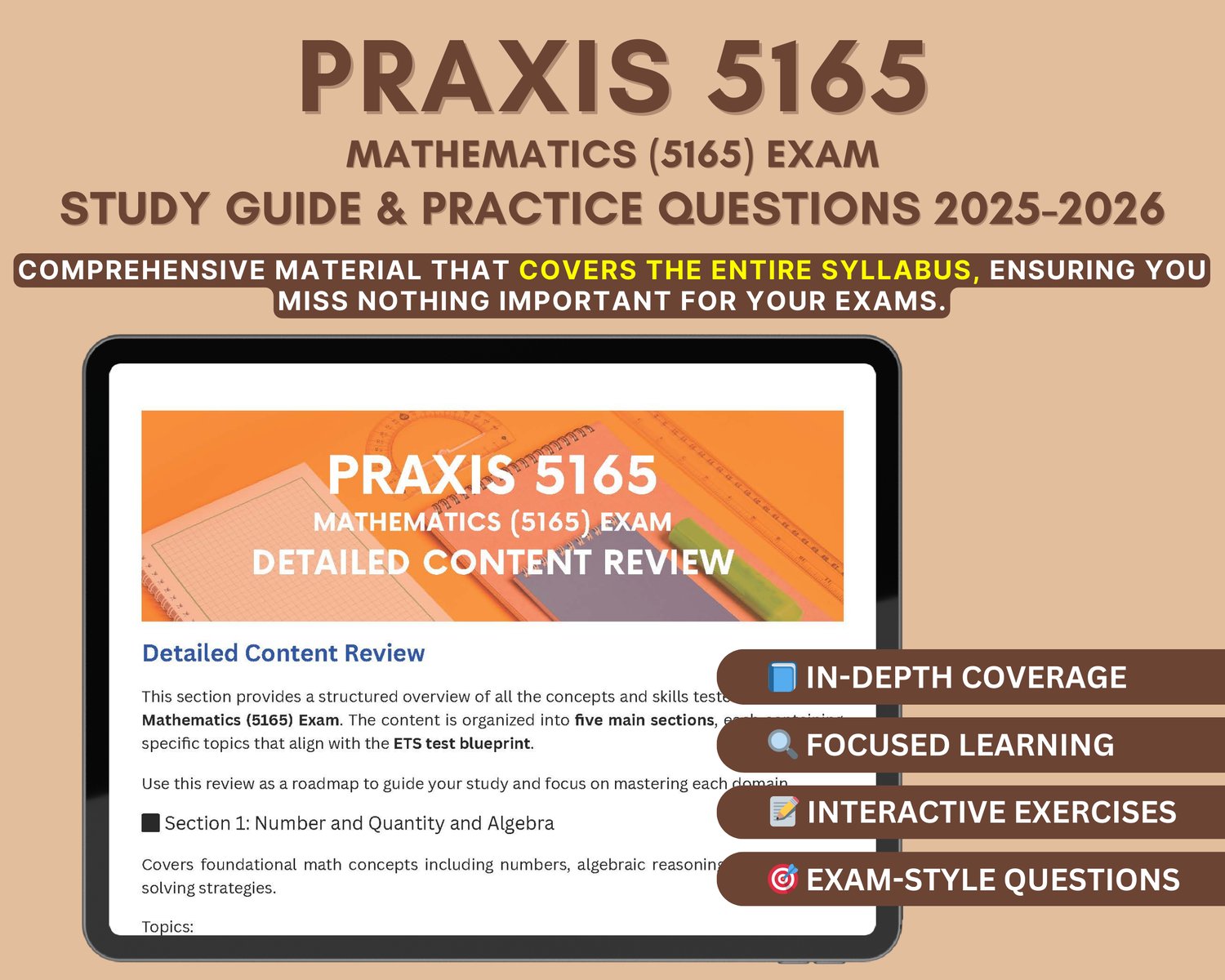 📘 Praxis Mathematics (5165) Study Guide 2025-2026 – Digital Download