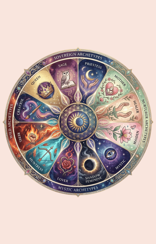 This beautifully designed workbook helps you uncover the 12 feminine trauma-response archetypes that shape your emotional patterns, relational dynamics, and soul-led healing. Through a gentle, intuitive assessment and guided reflection, you’ll identify your Primary, Sub-, and Shadow Archetypes — and learn how to work with them, not against them.