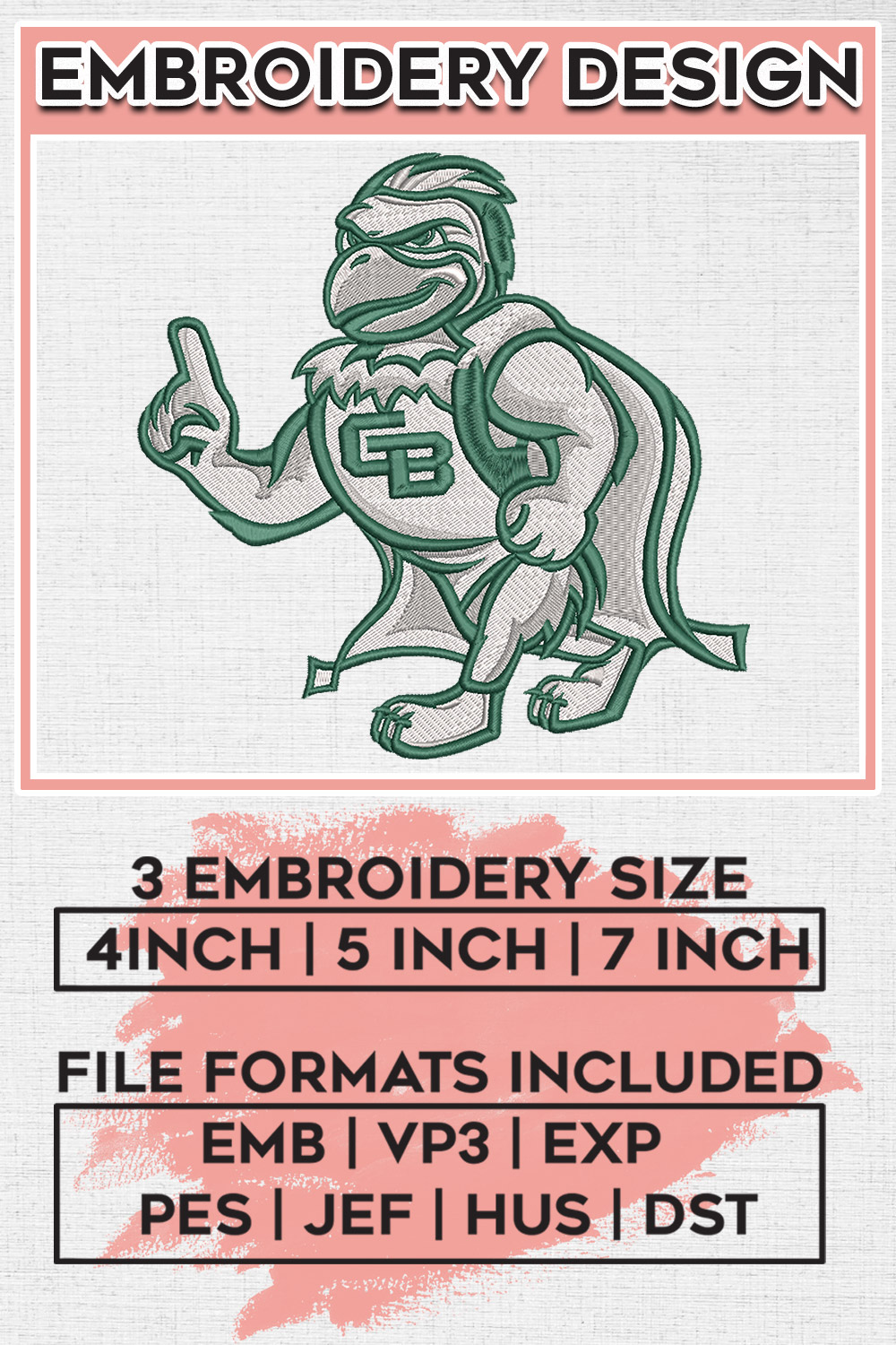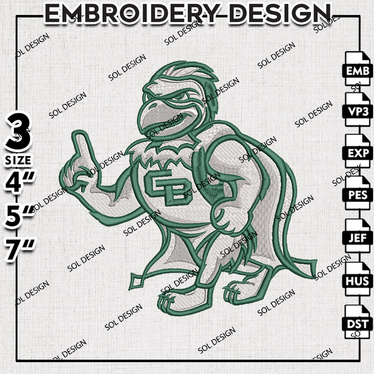Green Bay Phoenix Mascot Embroidery Designs, NCAA Green Bay Phoenix Machine Embroidery Designs, NCAA Logo embroidery designs, Ncaa Phoenix Logo, Digital Download