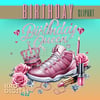 Birthday Queen PNG in pink glam style with heel, crown, roses & lipstick. High-res transparent clipart for shirts, tumblers, stickers, Cricut, Canva & sublimation.