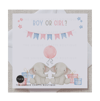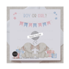 Printed with a soft watercolour Elephant design in Blue and Pink. A 3cm scratch sticker will be placed over a pink or Blue balloon to scratch and reveal the gender of your baby. Which one will u be buying??