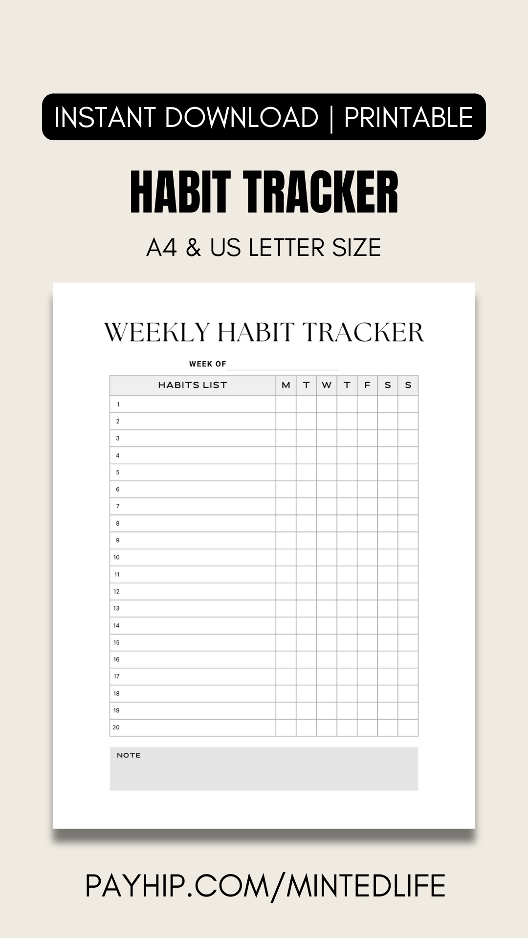 This printable weekly habit tracker is designed to help you stick to your new habits.