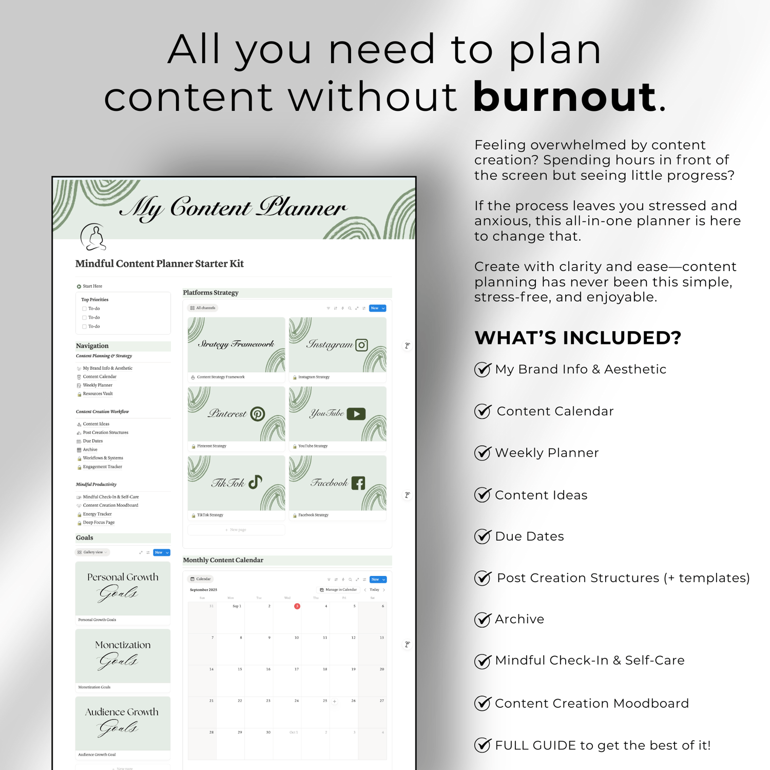 What’s Included in the Mindful Content Planner (Notion Template):