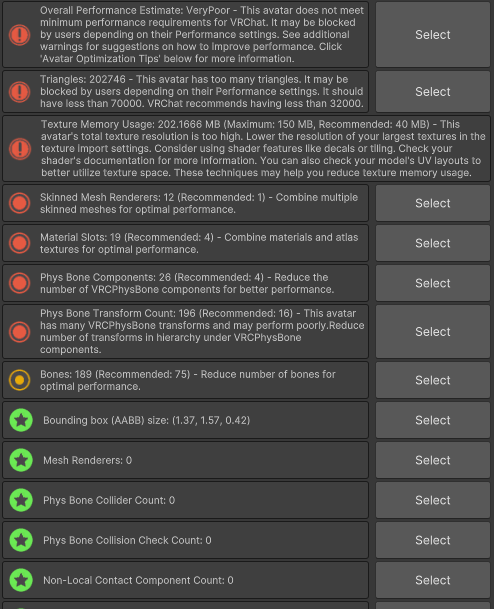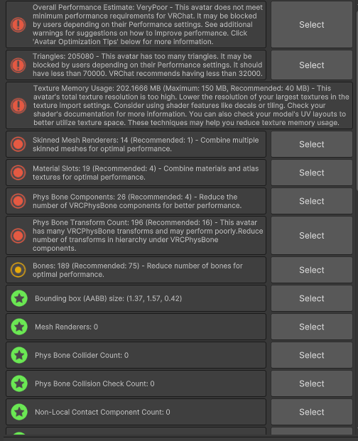 - This avatar is on the heavier side. In the future, I hope to be able to optimize more and hopefully eventually update this one with a more optimized version, but for now it remains pretty heavy. Please feel free to remove items that you don't want to bring the size down a bit.