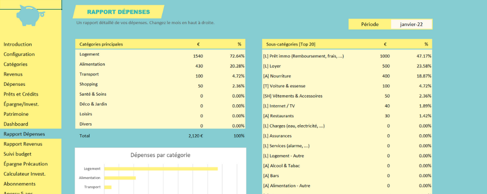 - Une vue détaillée de tes dépenses et de leurs répartitions.
